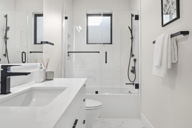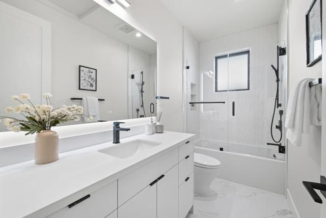 Discover unparalleled modern luxury in this newly built home in the heart of vibrant Menlo Park. Offering 2463 sqft living space with 4B3.5B on 6401 sqft lot. Sun-drenched living room anchored by a sleek built-in fireplace, seamlessly flowing into dining area and gourmet kitchen featuring premium Thermador appliances, quartz countertops, large central island with sink and wine cellar. The main level includes a 2BR/1BA attached ADU with fully equipped kitchenette, ideal for guests or multi-generational luxury living, plus a stylish half bath. The adjacent family room offers versatile living space, connecting to the ADU. Upper level a serene primary suite retreat with a luxury spa-inspired en suite, oversized shower, double sink vanity and walk-in closet. Another generously proportioned bedroom with full bathroom completes this level. Premium features abound: TOTO smart toilets, Hansgrohe fixtures, home water softener, commercial-grade insulation, Marvin windows, and European oak flooring. Set on a quiet, tree-lined street with a park-like ambiance, yet just minutes from Meta, Google, Stanford, Sand Hill Road, University Ave, downtown Menlo Park, and Stanford Shopping Center, this home delivers the perfect balance of tranquility, convenience, and high-end Menlo Park lifestyle.