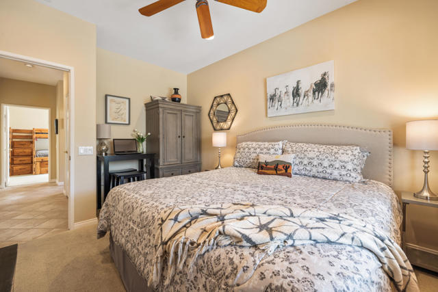 Welcome to 55+ Sun City Palm Desert--Montego model with attached casita--The ''Best Bang for your Buck'' active lifestyle retirement community in the whole Coachella Valley! Experience premier desert living in this rarely available immaculate 3-bedroom, 3-bath home with private casita nestled in an ideal location in the heart of the community. This home offers a perfect blend of privacy and access to world-class amenities. Beautiful curb appeal with mature colorful desert landscaping, gated front courtyard, lovely tranquil water feature and perfect for enjoying your morning coffee. Inside, the spacious kitchen features granite counters, gas cooktop, black and stainless appliances, maple cabinets. Cozy breakfast nook, breakfast bar, and dining area all with views to the courtyard. The kitchen, living room and dining room look out to the expansive backyard which creates an extra bright space, ceiling fans and upgraded lights. The living room has an entertainment center with space for a large TV. The luxurious master bedroom suite offers a quiet retreat and is extended with direct access to the backyard. The bath has cultured marble counters, double vanity, and a large walk-in closet with custom organizing system. On the opposite side of the home you will find the two guest bedrooms and shared guest bath, providing excellent separation and privacy. The casita provides the ultimate flexibilbity for guests, a home office,or hobby room featuring its own private entrance and full bathroom. It has king sized bed, microwave, TV, small fridge/freezer, toaster and ceiling fan.The laundry room is inside and includes stack washer, dryer, and cabinets while the two-car garage is extended with storage cabinets and epoxy paint on the floor. Step outside to a private yard, covered patio, expanded areas for entertaining, colorful landscaping, orange, and tangelo fruit tress, and a beautiful soothing rock waterfall feature providing an atmosphere perfect for relaxing and entertaining your family and friends. Sun City offers an incredible lifestyle with 80+ special interest clubs, post office, (2) 18 hole golf courses, 18 hole putting course, (2) restaurants, (2) fitness clubs, softball, tennis and pickleball and lots more! This home is impeccably maintained and truly move-in ready. ''Buy Where you Love to Play..Sun City Palm Desert.'