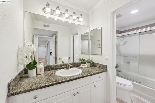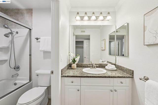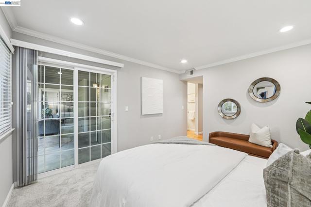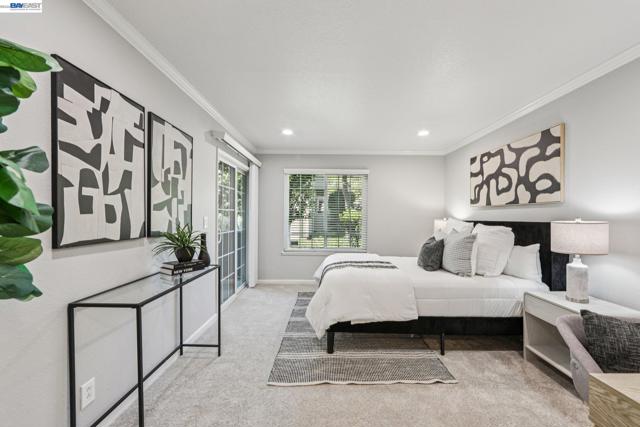 Open Sunday 3/29, 2-4pm. Discover quiet, peaceful living in this 2 bedroom, 2 bathroom condo located in Oakland’s Shadow Woods community. Spanning 1,123 square feet, this well maintained ground floor home offers easy access and a thoughtfully designed layout. The well appointed kitchen is equipped with a dishwasher, brand new electric stove and an attached laundry room. The adjoining dining and living areas are filled with light, creating a warm and welcoming atmosphere that features beautifully maintained hardwood flooring and recessed lighting. Each bedroom has been refreshed with paint and brand new carpeting and include their own en suite bathrooms and direct access to a private patio, providing a rare and seamless indoor outdoor living experience. The unit further offers two assigned parking spaces, one covered and one uncovered and is conveniently located near guest parking and a shared car wash station. Residents of Shadow Woods enjoy access to a variety of well maintained amenities, including a swimming pool, two relaxing spas, a fitness center, clubhouse, dry sauna and a playground. Ideally located with easy access to Interstate 580, this home is minutes from popular local attractions such as Chabot Park, the Oakland Zoo and the scenic views along Skyline Boulevard.