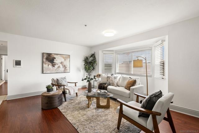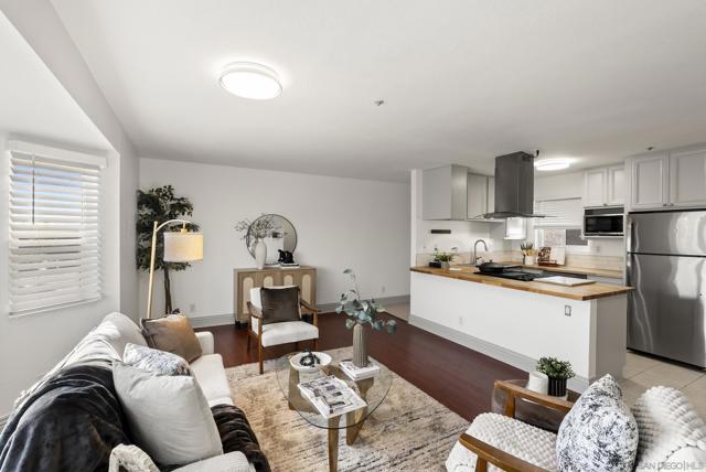 VA APPROVED! Rarely available 2 bed 1 bath condo in Imperial Beach with a spacious, functional layout and laminate flooring throughout. The kitchen has been thoughtfully remodeled with a custom backsplash, butcher block countertops, and newer appliances, giving the space a fresh, modern feel. The entire unit has also been recently repainted, making it truly move-in ready. Additional features include a full-size washer and dryer replaced in October 2021 and a water heater replaced in June 2020. Both bedrooms offer comfortable space and great natural light. The unit includes two dedicated side-by-side parking spaces with storage in a gated underground garage. Ideally located less than a mile from the beach, 15 minute drive to Coronado, close to local shops, dining, walking/biking trails, and several naval bases.