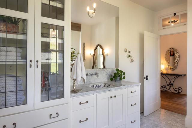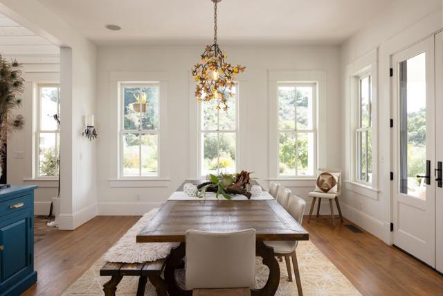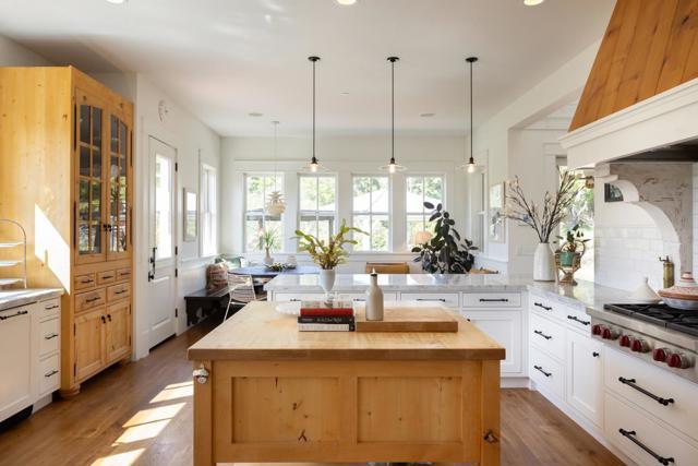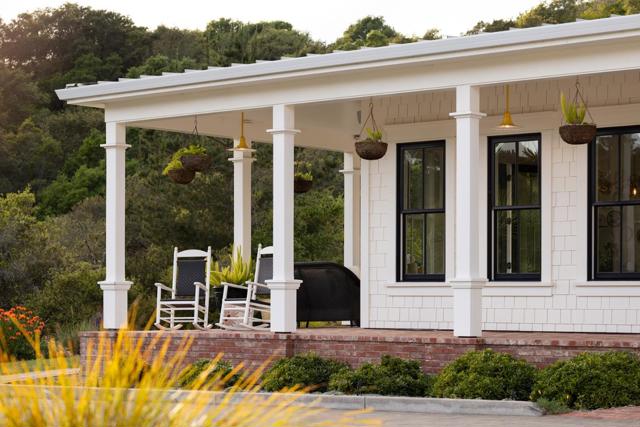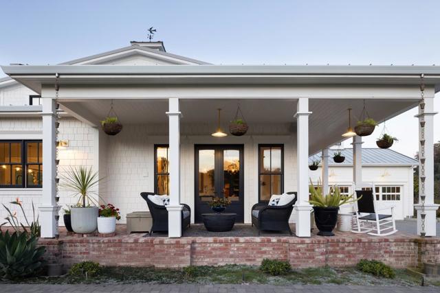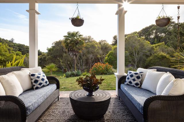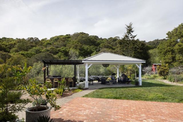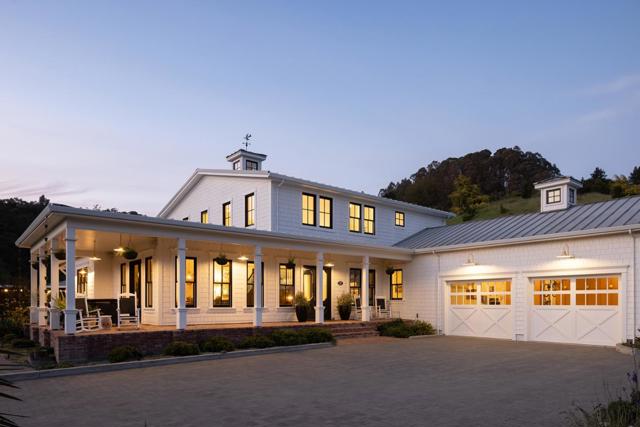 Honey Hill is a 21+ acre estate in the Aptos Hills that combines privacy, scale, and proximity, set among the rolling landscapes of Larkin Valley with panoramic views and minutes to Aptos Village and the coast. Built in 2014, the 3,796 sq ft home is designed for both daily living and entertaining, with wraparound brick porches, high ceilings, abundant natural light, and seamless indoor outdoor flow. The living room features a fireplace, built-ins, and direct backyard access. The chef's kitchen includes marble countertops, farmhouse sink, island, breakfast bar, walk-in pantry, and breakfast nook, with a dining room opening to the porch and a separate library for retreat. The main-level primary suite offers herringbone floors, walk-in closet, and a bath with clawfoot tub and double shower, while upstairs includes three bedrooms, full bath, family room, and office. Outdoor amenities include covered dining, firepit, outdoor kitchen, gardens, fruit trees, trails, and space for horses. Additional features include an oversized garage, mudroom, RV hookups, generator, and potential for a barn or ADU. A rare position where acreage and privacy meet coastal access, offering the feel of a secluded ranch just minutes from Aptos, Santa Cruz, and the broader Monterey Bay.