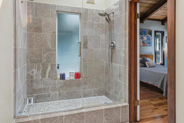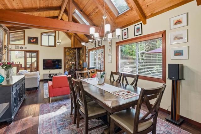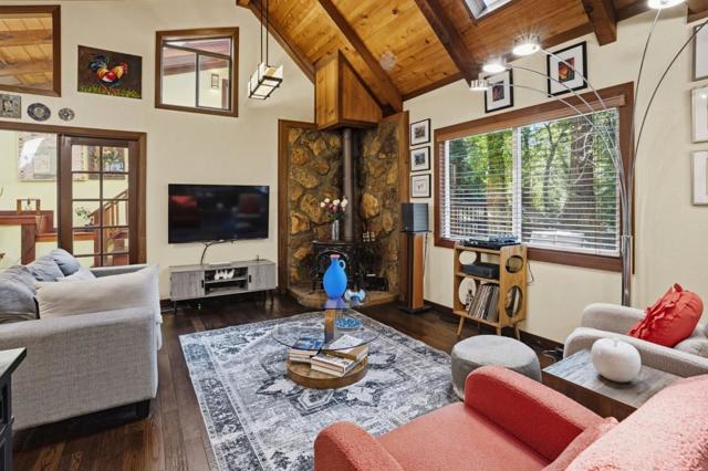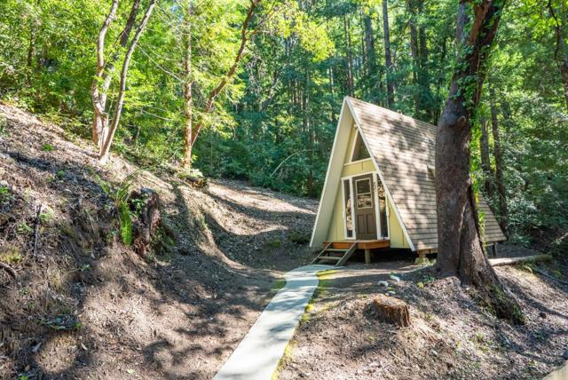 This beautiful home sits on a peaceful parcel offering privacy, open space, & stunning natural surroundings while remaining conveniently close to town.The main level includes living & entertaining. 2 separate entrances: main front entrance & practical mudroom entry, which is especially convenient throughout the seasons and ideal for families.2nd level, includes spacious office w/ large windows overlooking beautiful green meadow, built-in library, & light-filled workplace.Bedrooms are arranged in split-level layout.Exceptional outdoor living with 2 expansive decks ideal for entertaining/relaxing in nature.Plus a detached 2 car garage, storage shed, woodshed, an A-frame studio ideal for use as an art studio, fitness space, meditation room, or private retreat. Home equipped w/ full-house Guardian 22-kw generator, 2nd floor has air conditioning in bedrooms and office area. Heated by a propane powered forced air system serving both floors. The location is very convenient: approximately 10 minutes to Summit Road Exit and about 20 minutes to downtown Los Gatos, with easy access to Scotts Valley or Los Gatos for shopping, dining, and daily needs.This property offers space, privacy, versatility, and beautiful outdoor living, making it a truly special place to call home.