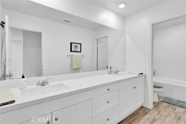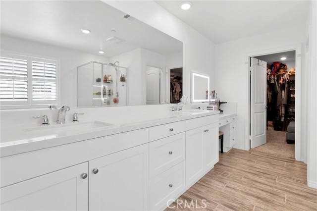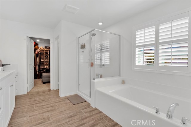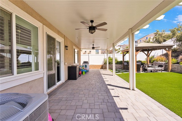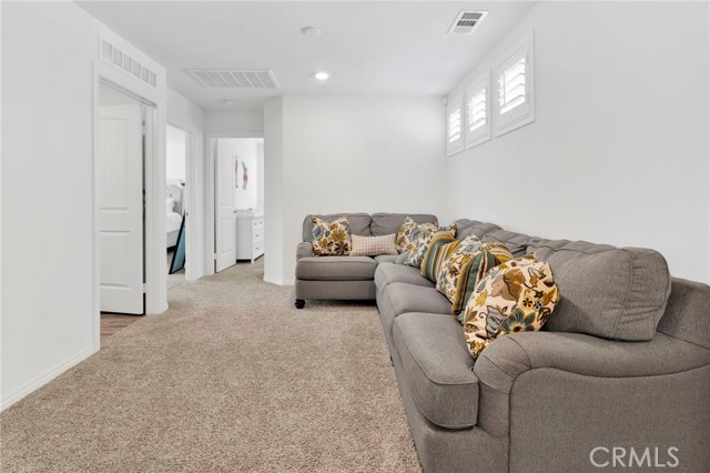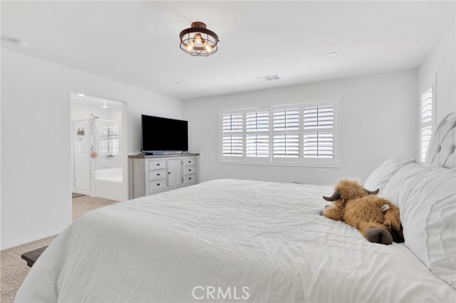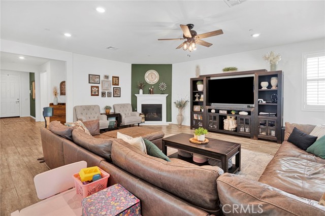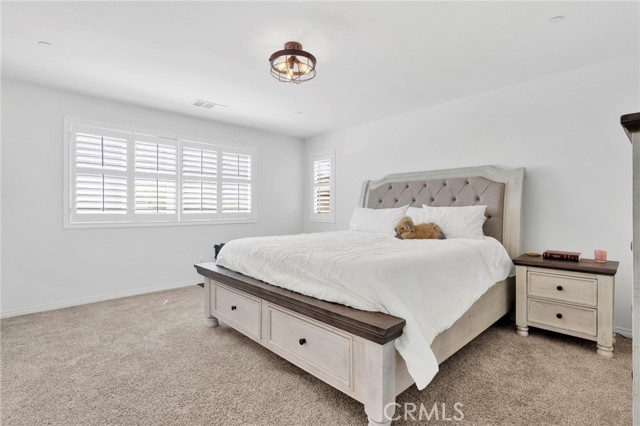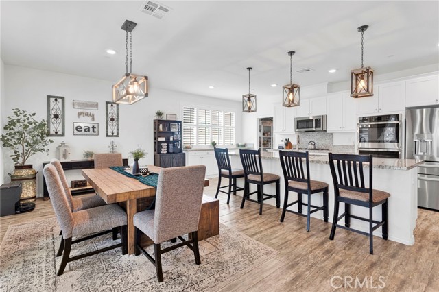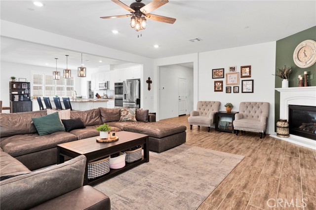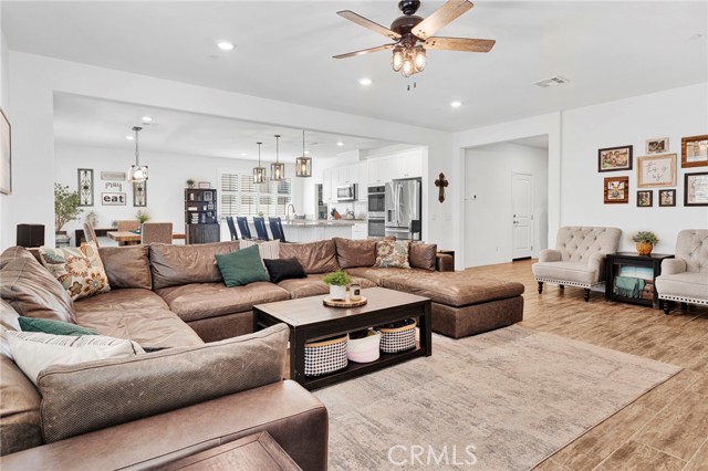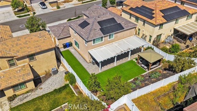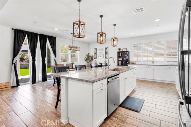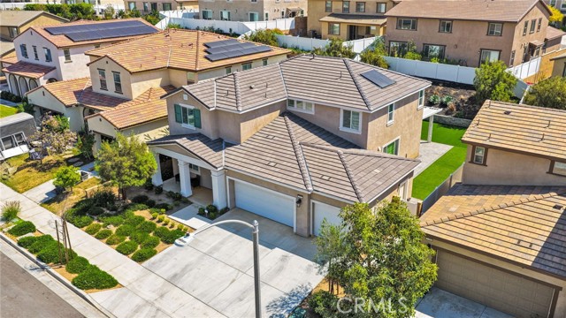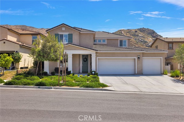 Welcome to this near-new, beautifully upgraded multi-generational home located in the desirable Shadow Rock community of Jurupa Valley! Boasting over 2,800 sq ft of living space, this thoughtfully designed home offers 5 bedrooms and 3 full bathrooms, including a spacious downstairs bedroom and full bath—perfect for guests or extended-family-style living. The home features an open-concept floor plan, with the kitchen overlooking the great room, creating the perfect space for entertaining and everyday living. The kitchen is truly the heart of the home, showcasing an oversized island, sleek white cabinetry, granite countertops, newer stainless steel appliances, and a large walk-in pantry with abundant storage. The great room features a cozy fireplace, setting the tone for warm gatherings and lasting memories. Throughout the downstairs and bathrooms, you’ll find neutral-colored designer wood-look plank tile flooring that is both stylish and easy to maintain, while the upstairs bedrooms, stairs, and loft feature durable, water-resistant carpet. Additional upgrades include custom lighting and ceiling fans, plantation shutters throughout, and a host of smart and efficiency features, such as a full interior and exterior security system, FLO by Moen smart water leak detection system, Rain Bird irrigation system with automatic rain shut-off, and Smart ovens controllable via phone. The home is equipped with a generator-ready electrical panel, including an inlet box and transfer switch, providing peace of mind and continued functionality during power outages. Step outside to your private backyard oasis, designed for low-maintenance living and entertaining. Enjoy artificial turf, built-in drainage, paver walkways, and a custom gazebo—perfect for BBQs and gatherings. The extended Alumawood patio cover features lighting and two ceiling fans, allowing you to enjoy outdoor living year-round. There’s even space to add a small pool, spa, or play area. Located near the freeway, major shopping, schools, and within a community offering beautiful parks and walking trails, this home truly has it all. Don’t miss your opportunity to own this exceptional home—it won’t last long!