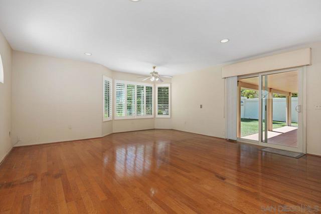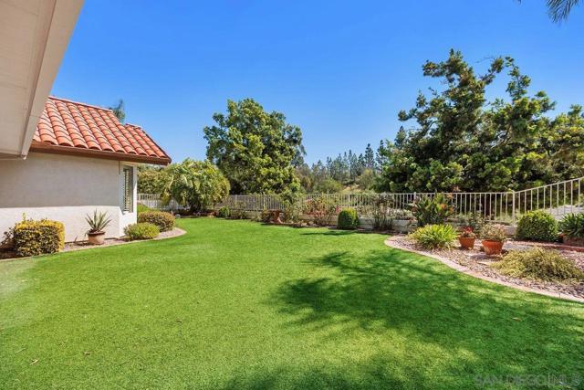 Rarely available single-story home in the highly sought-after Chateau Bernardo neighborhood of Bernardo Heights, offering views of the 5th hole of the Bernardo Heights Country Club golf course. Nestled within a mature and peaceful community, this home also includes access to the Bernardo Heights Swim and Tennis Club, a premier amenity center featuring tennis and pickleball courts, pools, a fitness center, billiards room, and more. This lovingly maintained home features a spacious and well-designed floor plan with a formal dining room, inviting living room with fireplace, and a comfortable family room just off the kitchen. A charming front courtyard entry and attached two-car garage add to the home’s appeal. The generously sized secondary bedroom includes its own walk-in closet and is conveniently located near the second bathroom for added privacy. Both the primary and secondary bathrooms have been remodeled and feature dual sinks. The kitchen includes stainless steel appliances, granite countertops, crown molding, and canned lighting. Major systems including the water heater, air conditioning, and furnace have all been replaced. Additional highlights include owned solar panels, plantation shutters in the family room and both bedrooms, vaulted ceilings, and recessed lighting. The front courtyard and backyard patio feature newer tile, while low-maintenance artificial turf has been installed in both the front and back yards. Step outside to a private backyard designed for entertaining, complete with a large covered patio, beautiful rose bushes. Rarely available single-story home in the highly sought-after Chateau Bernardo neighborhood of Bernardo Heights, offering views of the 5th hole of the Bernardo Heights Country Club golf course. Nestled within a mature and peaceful community, this home also includes access to the Bernardo Heights Swim and Tennis Club, a premier amenity center featuring tennis and pickleball courts, pools, a fitness center, billiards room, and more. This lovingly maintained home features a spacious and well-designed floor plan with a formal dining room, inviting living room with fireplace, and a comfortable family room just off the kitchen. A charming front courtyard entry and attached two-car garage add to the home’s appeal. The generously sized secondary bedroom includes its own walk-in closet and is conveniently located near the second bathroom for added privacy. Both the primary and secondary bathrooms have been remodeled and feature dual sinks. The kitchen includes stainless steel appliances, granite countertops, crown molding, and canned lighting. Major systems including the water heater, air conditioning, and furnace have all been replaced. Additional highlights include owned solar panels, plantation shutters in the family room and both bedrooms, vaulted ceilings, and recessed lighting. The front courtyard and backyard patio feature newer tile, while low-maintenance artificial turf has been installed in both the front and back yards. Step outside to a private backyard designed for entertaining, complete with a large covered patio, beautiful rose bushes, flowering plants, shrubs, and decorative brick accents. Ideally located near the conveniences of Rancho Bernardo and within the highly acclaimed Poway Unified School District, this home also offers easy access to the I-15 freeway. Enjoy being less than 30 minutes from San Diego beaches and downtown. Homes in this desirable neighborhood are rarely available. No Mello-Roos.