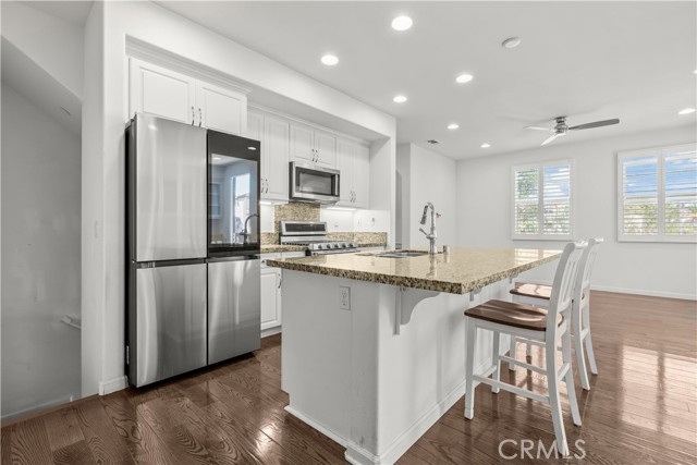 Welcome to this beautifully upgraded Mediterranean-style 3-story luxury Condominium located in one of Temecula's most desirable communities. This stunning home features 3 spacious bedrooms and 3 full bathrooms, thoughtfully designed for comfort and functionality. Step inside to find a 3/4 inch oak-wood flooring throughout, complemented by ceramic tile flooring in all bathrooms for durability and style. The home is enhanced with solid wood window shutters throughout, offering both elegance and energy efficiency. The kitchen is equipped with premium KitchenAid appliances, and the sale includes a washer, dryer, and a newer upgraded Samsung refrigerator, making this home truly move-in ready. An upgraded screen door adds both convenience and peace of mind. Positioned with a Northeast-facing orientation, this home enjoys natural light without excessive afternoon heat. The primary bedroom is ideally situated on the east side, creating a bright and refreshing retreat to start your day. Pride of ownership shines throughout-this home has been meticulously maintained and shows like a model. Located in a prime Temecula location, the community offers resort-style amenities including separate swimming pools for adults and kids, along with a relaxing jacuzzi. Enjoy the convenience of being just minutes from top-rated schools, parks, popular restaurants, and shopping centers. Don't miss this incredible opportunity to own a turnkey home in one of Temecula's most sought-after neighborhoods!