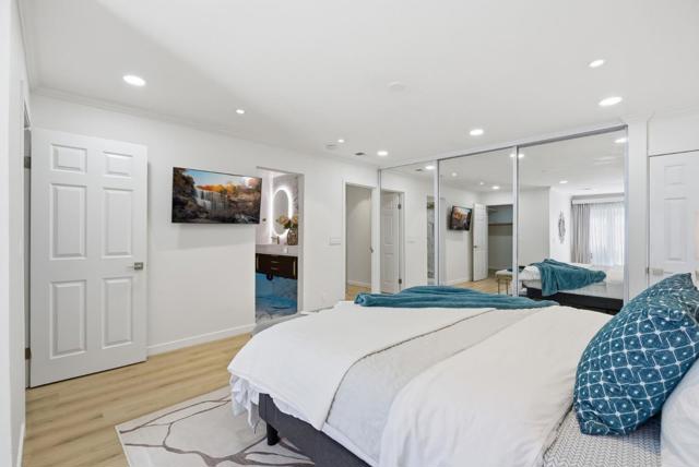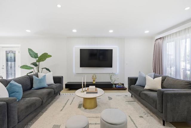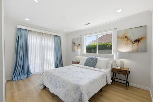 Single-story home located near the North San Jose and Milpitas border, newly remodeled with modern finishes and thoughtful design. The open floor plan features hardwood flooring, a custom TV wall, and a kitchen with granite peninsula, breakfast bar, and stainless steel smart appliances.Skylights and large windows provide abundant natural light, complemented by recessed lighting with app-controlled features. The primary suite includes a custom organized closet and updated vanity. Built-in wardrobes throughout the home provide ample storage. Each bedroom offers sliding door access to the backyard.The backyard features a spa, landscaped grounds with palm tree, and automated sprinkler system.Additional features include Ring security system and smart-controlled HVAC and lighting. Convenient location near BART, Highways 880, 237, and 101. Close to Trader Joe's, Great Mall, and various grocery and shopping options. Nearby schools include Zanker Elementary, Rancho Milpitas Middle, and Milpitas High School.