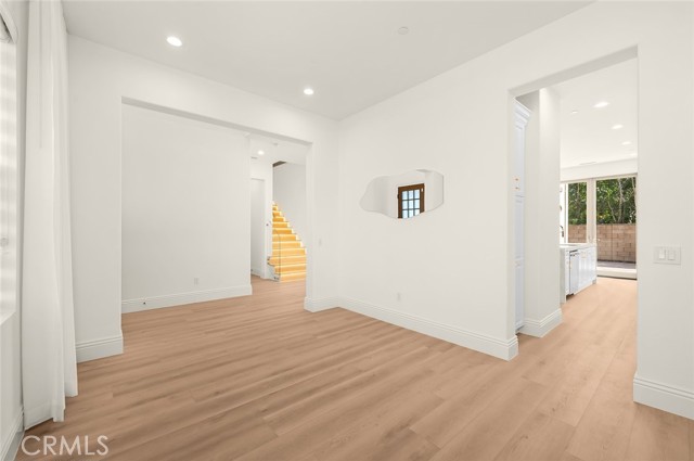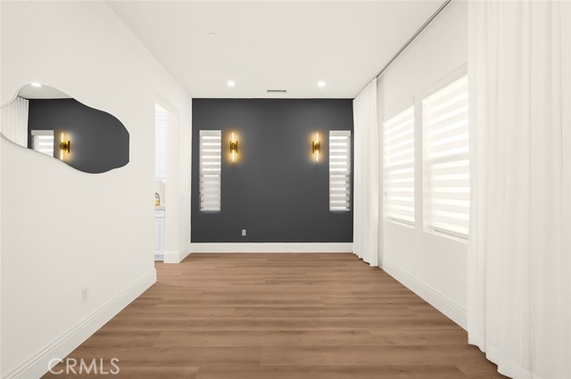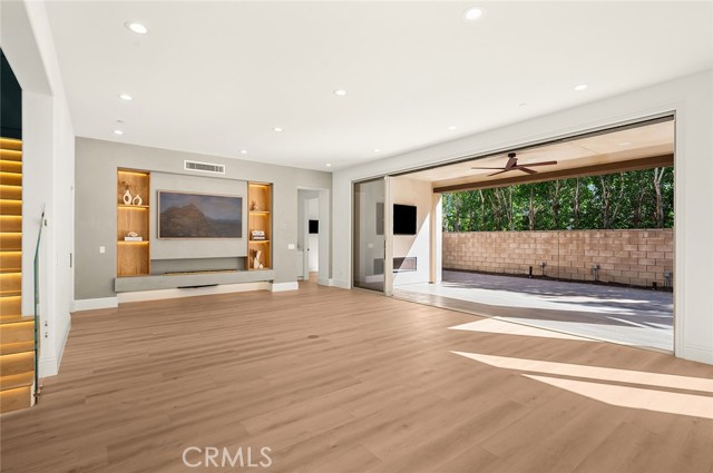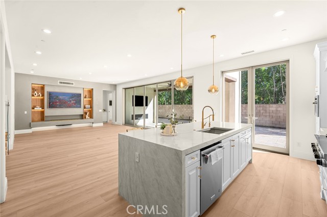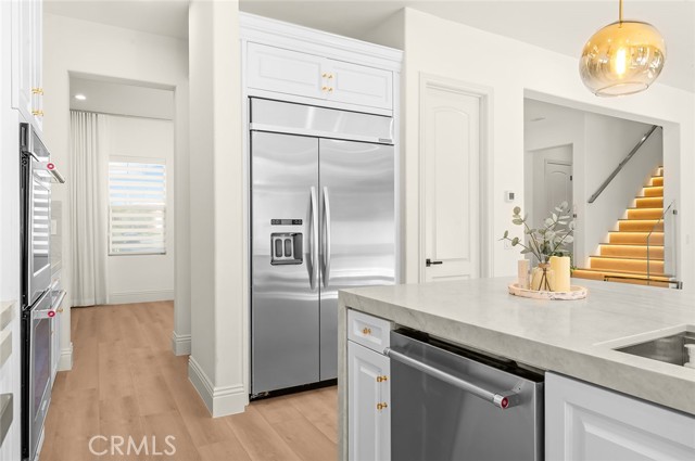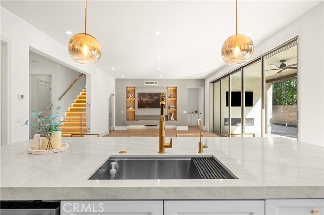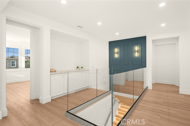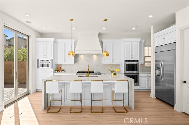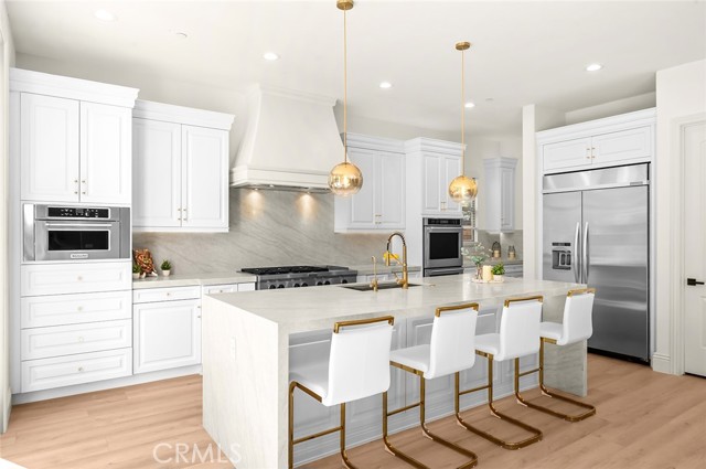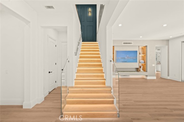 Fully reimagined, design-forward home just under 4,000 sq ft on one of the most desirable streets in Tustin Legacy. This turnkey, model-like residence features a dramatic skylit entry with soaring ceilings and an open-concept layout filled with natural light. It is upgraded throughout with wide-plank luxury flooring, designer lighting, and modern finishes. The chef’s kitchen showcases Taj Mahal countertops with waterfall edges, custom cabinetry, and premium stainless steel Kitchen-Aid appliances. A custom double-door system creates seamless indoor-outdoor flow, ideal for entertaining. Highlights include a custom wine & tequila room and a striking LED-lit staircase with glass railings. The primary suite offers a spa-inspired bath and a large walk-in closet. Secondary bedrooms provide flexibility for guests or office use. Private outdoor space designed for entertaining and relaxation. Located in the highly sought-after Tustin Legacy community near top-rated schools, parks, pickleball courts, shopping, and dining. Rare opportunity on a premier street.