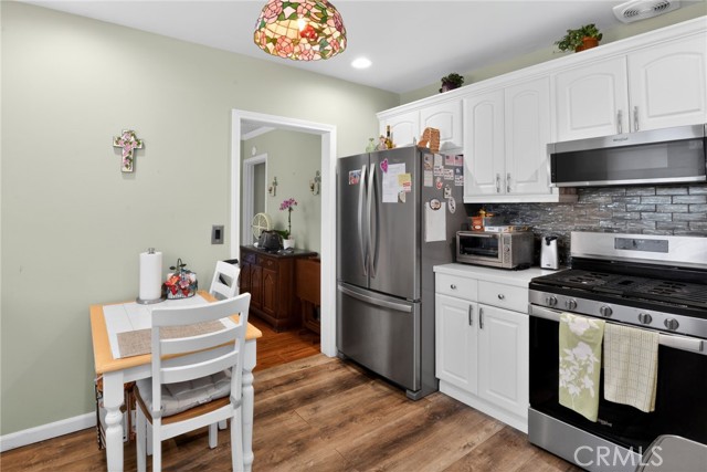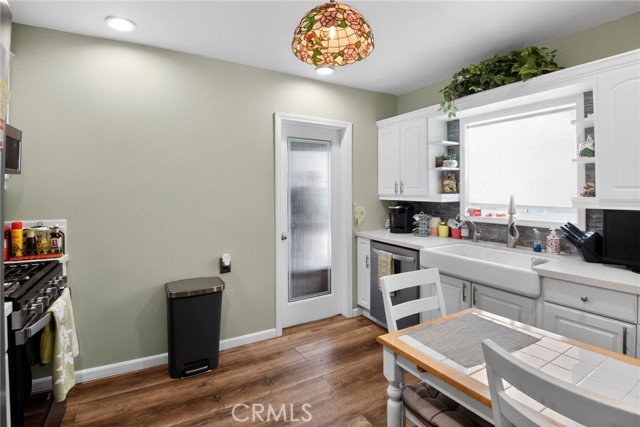 A Charming 1927 single-story home in desirable San Fernando offering 1,248 sq ft of comfortable living space on a generous 5,028 sq ft lot! This well-maintained residence features 3 bedrooms and 2 bathrooms, perfect for families or anyone seeking classic Valley charm with modern updates. Enter into a bright, open living/family room with warm wood flooring and soft sage-green walls that create an inviting atmosphere for relaxing or entertaining. Adjacent is a formal dining room with plenty of space for family gatherings. The updated kitchen is standout-white shaker-style cabinets, quartz countertops, a large farmhouse sink, stainless steel appliances, and a convenient walk-in pantry for ample storage. A charming stained-glass pendant light adds character above the breakfast table area. All bedrooms are generously sized with neutral tones, ceiling fans, and ample closet space (including a large wardrobe closet in one room). The two full bathrooms have been nicely refreshed: one features warm wood vanities with white tile and a large mirror, while the other offers a clean step-in shower/tub combo with modern gray accents and white fixtures. Additional highlights include a dedicated laundry area with full-size washer/dryer and extensive built-in shelving for storage, plus a basement offering extra utility/storage space. Step outside to your private backyard oasis—a spacious concrete patio with covered seating, mature landscaping, fruit trees, colorful bougainvillea, and room for BBQs, play, or future ADU potential. Located in a quiet, established San Fernando neighborhood with easy access to parks, schools, shopping, dining, and major freeways. This home combines timeless character with practical updates—don't miss your opportunity to make it yours! Schedule a private showing today!