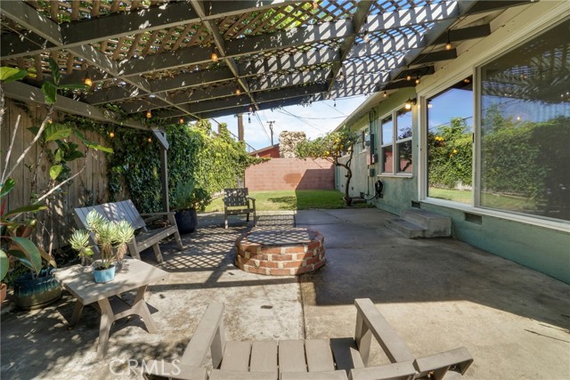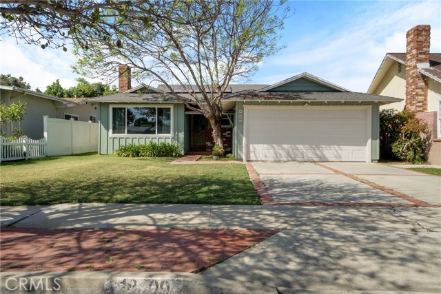 Imagine a single-level home with a modern retro vibe, thoughtfully designed for both comfortable living and effortless entertaining. This inviting residence features 3 bedrooms and 2 bathrooms, offering over 1,500 sq. ft. of well-appointed living space. Upon entry, a welcoming foyer opens to a bright and spacious living room highlighted by a classic brick fireplace. The generous living area easily accommodates a formal dining space and/or home office and flows seamlessly into a large, family-style kitchen. The kitchen features tile countertops, vintage cabinetry, ample storage, and comes equipped with a dishwasher, stove, and refrigerator. A convenient laundry closet is also located within the kitchen. Sliding doors lead directly to the backyard, creating ideal indoor-outdoor flow. The outdoor space features a fire pit and grassy area—perfect for entertaining or everyday enjoyment. The spacious primary suite includes an updated en-suite ¾ bathroom and an impressive built-in wall unit with drawers and additional hanging space beyond the standard closet. Additional highlights include an attached 2-car garage with extra storage, air conditioning, solar, newer windows, and a new FAU system located in the attic with pull-down ladder access and updated insulation. Ideally situated near award-winning Torrance schools, shopping, dining, and with convenient access to the 405 freeway, this home offers the perfect blend of character, comfort, and convenience
