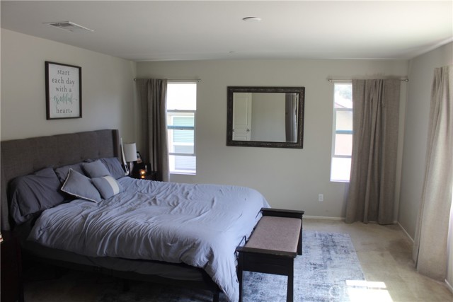 Wow! Wow! Wow! What a Nice Newer Home located in the highly sought out Family Community of Audie Murphy Ranch! Great Curb Appeal, Home has 4 Bedrooms / 2.5 Bathrooms, Large Family Kitchen with Large Island, Pantry, Granite Countertops, Stainless Steel Appliances, Recessed Lighting, Laminate Flooring on lower level, 1 Bedroom and 1 Bathroom Downstairs, Open Floor Plan to include Family Room, Kitchen & Dining Area, Carpet on Stairs and Bedrooms, Go upstairs to a Good Size Loft Area, being used as a Den or Office area, Large Master Bedroom with Large Master Bathroom, also Bedrooms 2 & 3 located upstairs, 1 Full Bathroom and also includes a Large Laundry Room with Cabinets, and Sink, Central Air/Heat, Enjoy the Gorgeous open Backyard with Grass Area, Planters, Covered Patio Area to enjoy those nice evenings with Friends and Family, Nicely Landscaped Front and Back with a lot of external lighting in planters, 3 Car Garage with 2 parking spots, 3rd area is being used a Gym/Storage, Direct Access into Home, Home has set up a 220 Volt EV Charger Outlet, EV Ready, Solar is on Lease, Close to Everything that Menifee Area has to Offer, Entertainment Centers, Shopping, Restaurants, Schools, Parks, Sport Park, Freeways and so much more.... Don't miss out on this Home....