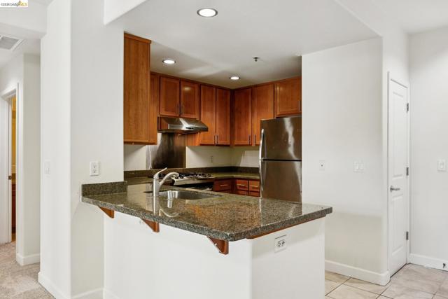 This 1-bedroom and 1-bath unit has an open floor plan, facing the serene courtyard. It is carpeted throughout and is fitted with air conditioning. The kitchen features granite countertops, a gas stovetop range, and all stainless steel appliances. The bedroom boasts a walk-in closet for extra storage. The full bathroom offers a granite countertop and vanity, a shower over the tub, and tile flooring. The washer and dryer are conveniently tucked away in the hallway closet next to the bathroom. 8 Orchids is a gated complex with an entry lobby with a soaring ceiling, media center, party room, tranquil courtyard, and rooftop garden that offers views of metropolitan Oakland and the Bay. WalkScore® 99, only blocks away from Old Town Oakland and Jack London Square restaurants, farmers’ markets, shops, and a movie theater, as well as BART, AMTRAK, public transit, and freeways. Only about 15 minutes from San Francisco.