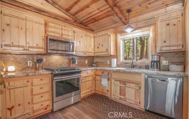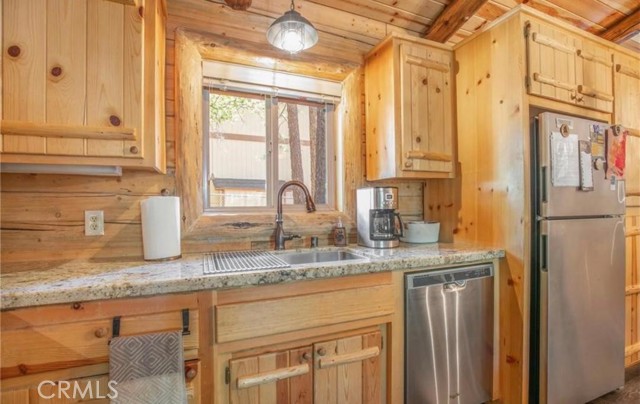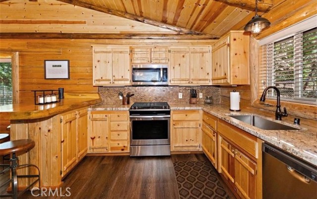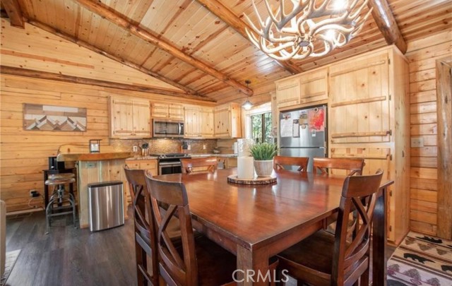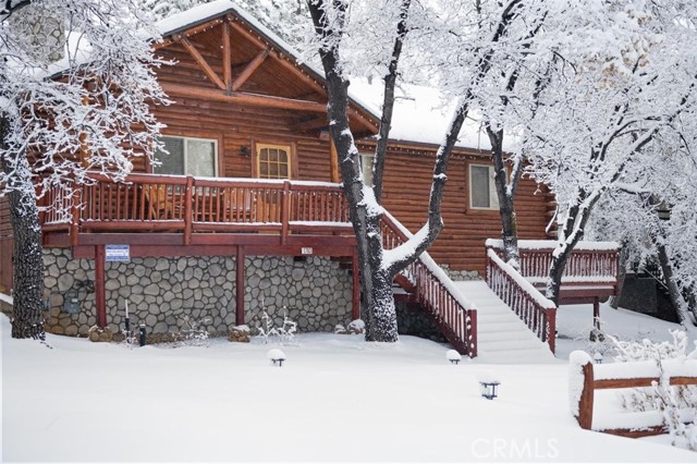 Wow! Wow! Wow! What a Gorgeous Log Cabin Home in the Moonridge Mountain Estates, Home was Remodeled in 2018 and has Large Front Porch Area for enjoying the area and the Seasonal Weather, This Single Story home has a unique Open Floor Plan gives you all the room for Entertaining Friends & Family, This 3 Bedroom / 2 Full Bath Cabin is Absolutely Beautiful with its combination of Rustic and Style you will feel right at home, Walk thru the front door to a Large Great Room that Boasts a Beautiful Slate Stacked Stone Fireplace with Custom Mantle & Hearth, High Beamed Ceilings showing Beautiful Wood lined interior W/Log Beams, Large Family Kitchen with Stainless Steel Appliances, also has a Dining Area and Breakfast Counter with Plenty of Room to hang out and enjoy this Beautiful Cabin, Large Master Bedroom with Large Separate Bathroom, 2 Guest Bedrooms Good Size with Closets, Guest Bathroom, Carpet in all the Bedrooms, Rest of home has Engage hybrid flooring (100% waterproof), Home is a Smart Home with 4x Motion Sensor Cameras, Smart Door Locks, Smart Thermostat, Smart Smoke and Carbon Monoxide Detector, Ceiling Fans Great Room & Bedrooms, Back Porch Area has Jacuzzi tub and BBQ, Large Front Driveway to park all your Cars, Large Front Yard w/Sprinkler System on Timer,