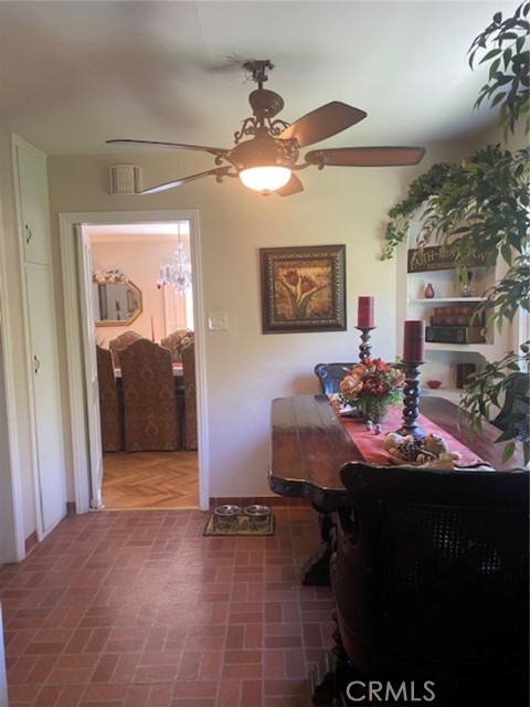 Beautiful, historic home on Euclid Avenue in Upland. Four bedrooms, two bathrooms plus an office on a large lot. Gorgeous hickory, herringbone flooring. Recent upgrades include new furnace and new backyard sprinkler water pipes. Large brick fireplace. Furnishings will be available for additional sale. Two large bedrooms, one has a built-in walk-in closet, while the other has two walk-in closets. Laundry room off of the kitchen with pantry shelving and a sink. Three bedrooms have doors leading to the spacious exterior. ADU can be built on the property. Two bedrooms were added to the property in years past and one bathroom was removed. Buyer to verify. Builder was the original owner and added some elements that add to its character. Many outdoor areas available for entertaining and enjoying the peaceful backyard. Gorgeous brick patio. Loquat and fig tree on property. Two large 10' x 12' sheds included as well as a small unit attached to the house. Two car garage has storage added to the top.