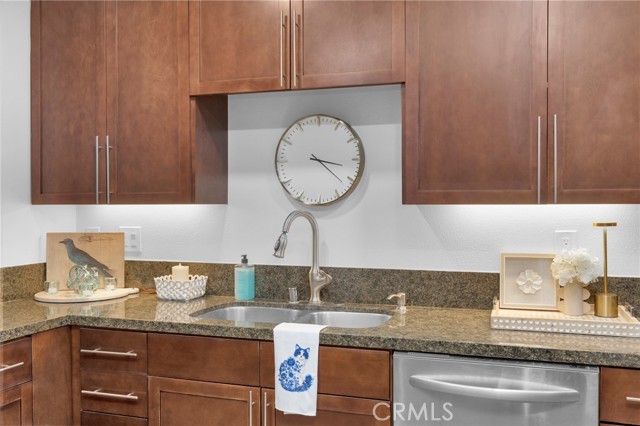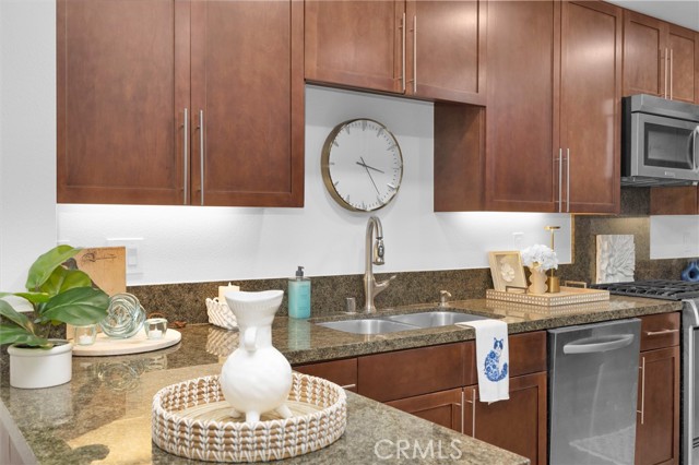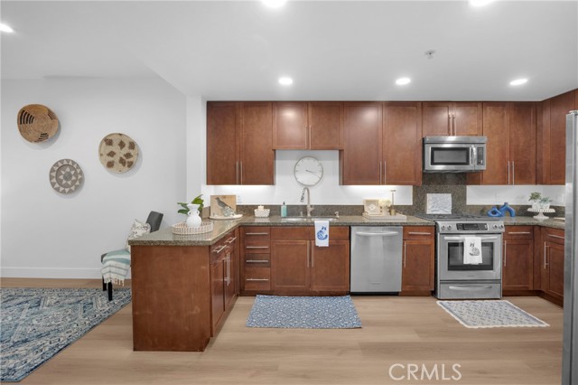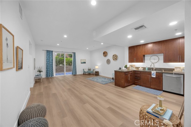 Welcome to Blu, a highly sought-after condominium community in the vibrant East Village Arts District in Downtown Long Beach. This spacious 2-bedroom, 2-bath condo plus office (optional 3rd bedroom) offers approximately 1,450 square feet of living space, a private patio, and beautiful upgrades throughout. The open-concept floor plan features a bright living area and a large kitchen with granite countertops, stainless steel appliances, and ample cabinet space, perfect for everyday living and entertaining. A bonus flex space off the kitchen is ideal for a home office, den, or additional sitting area. Recent upgrades include brand new luxury vinyl flooring, fresh paint throughout, recessed lighting, updated electrical outlets, and ceiling fans in the bedrooms. The primary suite features a walk-in closet and en-suite bathroom, while the second bedroom is generously sized and located near the second bathroom with a shower/tub combination. Additional features include in-unit laundry and two secure side-by-side underground parking spaces. Blu offers resort-style amenities including a courtyard with fireplace seating, BBQ area, putting green, outdoor lounge areas, fitness center, and a billiards club room/lounge with bar, pool table, TVs, and ample seating. Located just minutes from restaurants, shopping, entertainment, and the beach, this home offers the best of Downtown Long Beach living.