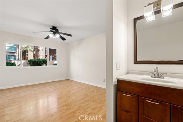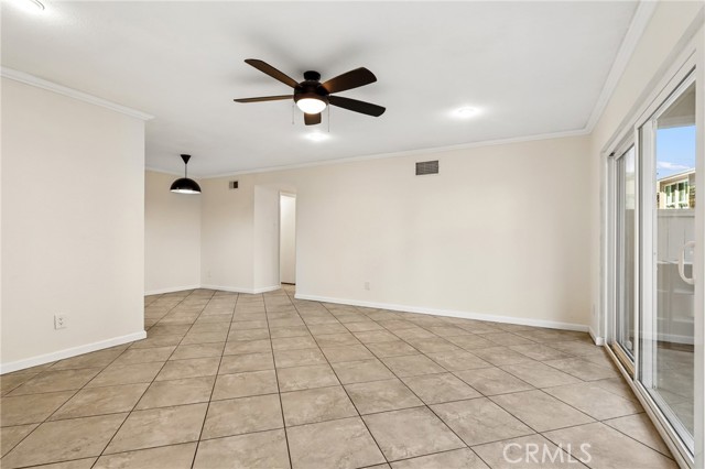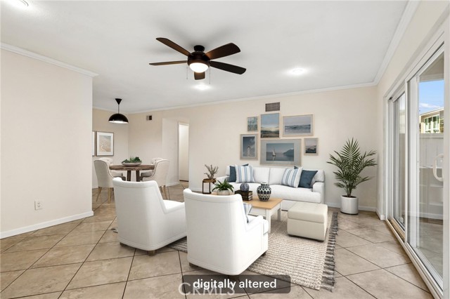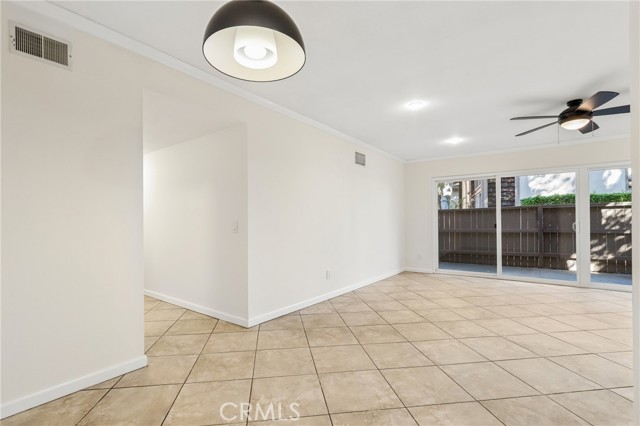 Welcome to this charming first-level, single-level condo in the desirable Redwoods community of Santa Ana. This inviting home features recessed lighting and elegant crown molding throughout, creating a warm and polished ambiance. The living space opens through sliding doors to a private, spacious enclosed patio—perfect for relaxing or entertaining. Residents enjoy access to resort-style amenities including a pool, spa, barbecue area, gym, clubhouse, and beautifully maintained greenbelts with scenic walking paths. HOA dues conveniently cover gas, water, sewer, and trash. Ideally located near the 55 and 22 freeways, this home offers easy access to nearby shopping, dining, and everyday conveniences—making it a perfect blend of comfort and accessibility.