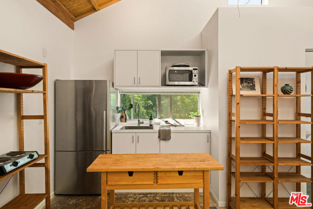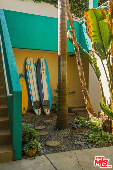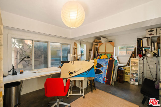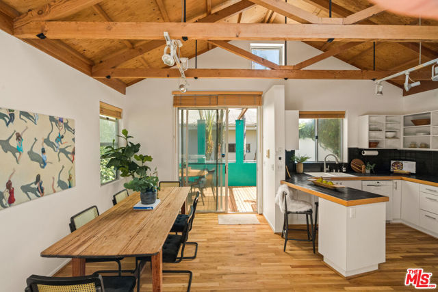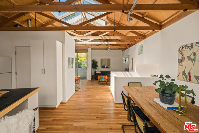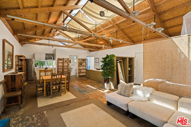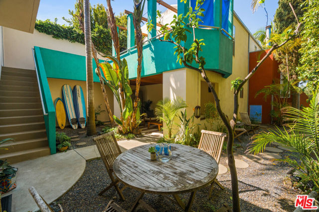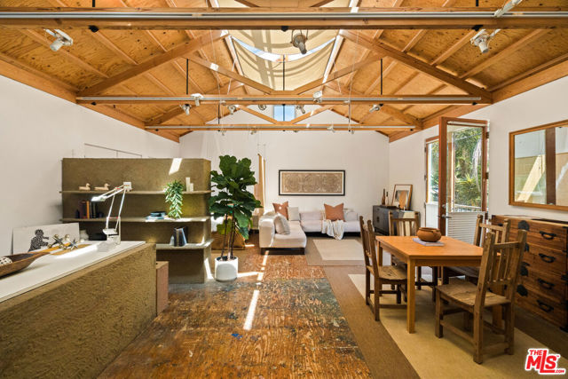 Soulful, Artists Retreat, Steps from Abbot Kinney - Tucked away on a serene, tree-lined street just moments from the vibrant energy of Abbot Kinney Blvd, this Venice property feels like a private sanctuary: an inspired oasis where nature and creativity intertwine. Lush, mature trees, palms and tropical layered greenery envelop the grounds, creating a sense of calm and seclusion rarely found so close to the heart of the Westside. Dappled sunlight filters through the foliage and sets the tone for a home that is both tranquil and full of possibility. The main residence offers 3 bedrooms and 2 baths, with a sun-drenched, top floor living space (with vaulted exposed beams and skylights) that captures beautiful natural light throughout the day, creating an airy and inviting setting for both quiet mornings and lively gatherings. Above the garage and carport, a separate, skylit loft/rec room provides a flexible and inspiring retreat, ideal for art and creative pursuits, a home office, or guest quarters, while the garage and carport themselves offer additional versatility and can easily function as workspaces or be converted back to parking. Gated parking ensures privacy and convenience, and generous outdoor areas invite you to relax, entertain, and connect with the surrounding natural beauty, making this a rare blend of tranquility, functionality and artistic spirit that captures Venice living at its most vibrant.