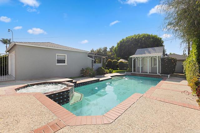 Welcome to this beautifully remodeled residence in the heart of West Whittier, where timeless charm meets thoughtful modern upgrades. Situated on an expansive ±7,670 square foot lot, this 2-bedroom, 1-bath home offers approximately 1,090 square feet of well-designed living space. Walking distance to Palm Park. The interior showcases a bright, inviting floor plan enhanced by newly refinished hardwood floors, fresh designer paint, and upgraded baseboards—creating a clean, contemporary feel while preserving the home’s original character. The renovated kitchen is appointed with brand-new stainless steel appliances, including range, refrigerator, dishwasher, and microwave, complemented by new tile flooring for both style and durability. Additional features include a detached 2-car garage, new window coverings throughout, and no HOA. Year-round comfort is provided by central heating and air conditioning, while the fully owned solar system offers long-term energy efficiency and cost savings. The backyard presents a private, resort-style setting ideal for both entertaining and everyday enjoyment. Highlights include mature landscaping, a pool and spa (pool may require replastering), and a built-in gas BBQ area. A detached cabana/pool house adds valuable flexibility and is well-suited for a home office, gym, or creative studio. A separate storage shed further enhances functionality. This is a well-rounded property offering a rare combination of updates, outdoor amenities, and long-term value—ready for immediate enjoyment.