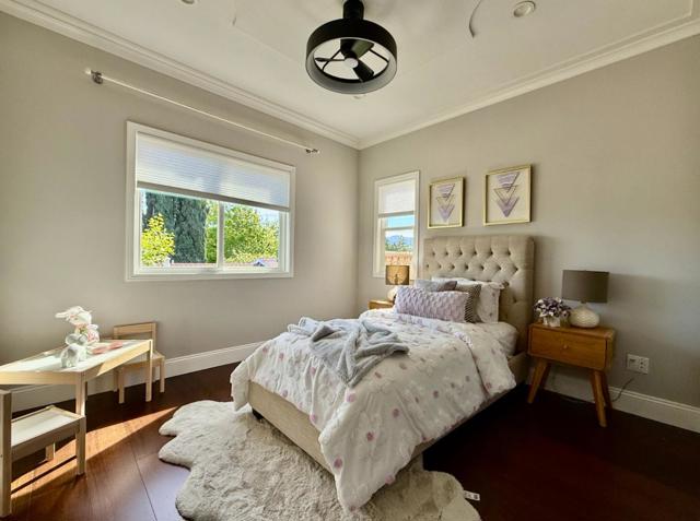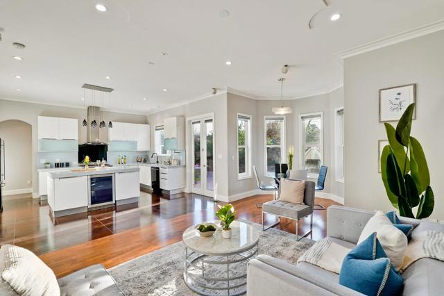 Stunning custom-built Mediterranean residence (2008) offering 2,769 sq ft of refined living space plus an oversized ~600 sqft garage on a 6,300 sq ft lot in prime West San Jose. Elegant stucco exterior and quality craftsmanship throughout. Main level features 10 ceilings and a dramatic 12 coffered ceiling in the living room, creating a bright, open feel. Thoughtful floor plan includes a desirable ground-floor in-law suite, formal living and dining areas, and a separate family room. Gourmet kitchen with breakfast nook, ample cabinetry, and functional layout ideal for everyday living and entertaining. Upstairs, the luxurious primary suite offers a private balcony, sitting area, dual walk-in closets, and a spacious bath. Additional bedrooms, dedicated office/study, loft, and convenient upstairs laundry provide flexibility for modern living. Professionally landscaped yard with premium flagstone, artificial turf, fruit trees, and garden areas designed for low maintenance and indoor-outdoor enjoyment. Located in a highly sought-after West San Jose neighborhood with access to top-rated Lynbrook High School, near major tech campuses, shopping, and dining. Exceptional opportunity in a premier location.