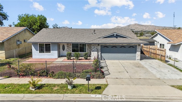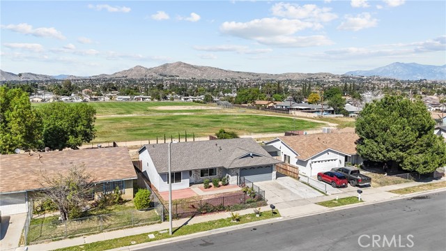Welcome to this beautifully updated single-story home offering 4 bedrooms and 2 bathrooms in a well-established Moreno Valley neighborhood. With thoughtful updates completed in 2021, this home blends modern finishes with everyday comfort. Step inside to find an open and inviting layout with updated flooring, neutral paint, recessed lighting, and abundant natural light throughout. The kitchen features stylish cabinetry, ample counter space, stainless appliances, and a dining area that opens directly to the backyard, creating an easy flow for gatherings and daily living. The flexible floor plan includes a private fourth bedroom separated from the others, ideal for a home office, guest room, or multi-generational living. Both bathrooms have been refreshed, and the home has been well maintained inside and out. One of the standout features of this property is the sense of openness behind the home. Backing to a school field with no two-story neighbors directly behind, you’ll enjoy expanded views and distant hills that create a bright and airy backdrop. The spacious backyard offers room to relax, garden, or design your own outdoor retreat while taking in the open surroundings. Conveniently located near schools, parks, shopping, and commuter routes, this move-in ready home offers space, versatility, and scenic surroundings all in one.