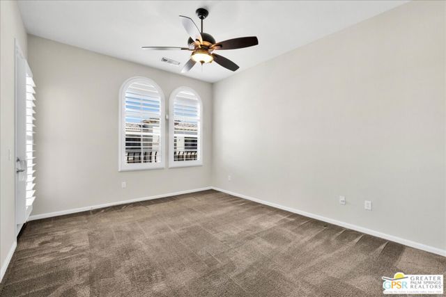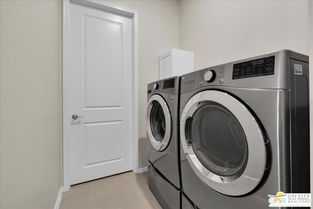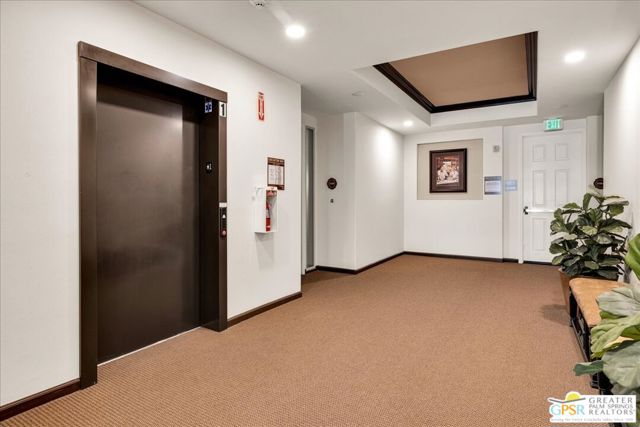 Welcome to Villa Portofino! The premier 55+ active adult gated community known for its Italian-inspired architecture and resort-style living. This beautiful top floor 2 bedroom, 2 bath unit has elevator access and is a very accessible unit. This very popular model features an open floor plan with living, dining area in between the bedrooms on opposite ends. Great privacy! The open kitchen features a center island, lots of counter space, a pantry and a separate laundry room. The large primary suite opens to the private balcony and features a large walk in closet and spacious spa-like bath with dual vanities and large walk-in shower. The 2nd bedroom has 2 closets and is very. The stylish second bath has been upgraded to be fully accessible This unit also comes with a 2 car garage that has direct access to the lobby. A new takless water heater was recently installed. Amenities at Villa Portofino include a 30,000 Sq. Ft. Clubhouse that features a 100-seat movie theater, fitness center, yoga studio, library, and billiards room. Dining at The Bistro at Villa Portofino, which offers full-service dining and a sports bar. Other ammenities include a junior Olympic-sized pool, spa, concierge services, and a full calendar of social activities. HOA fees cover water, trash, sewer, high-speed internet, cable TV, building insurance, and pest control. Community solar helps to provide low electric bills. This is desert resort living at it's best!
