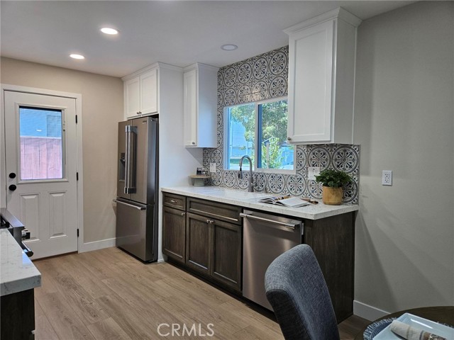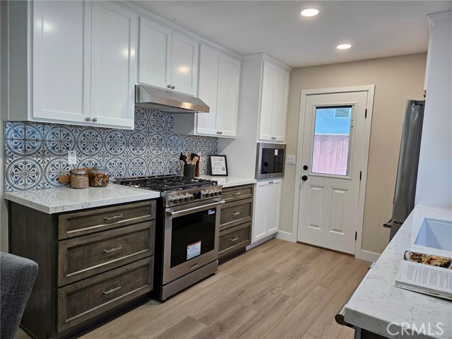 **PRO PHOTOS COMING SOON**Welcome to this beautifully renovated 3 bedroom, 2-bathroom home located in desirable Torrance neighborhood. Featuring a bright open floorplan, the front living area flows through to the dining area and kitchen. The kitchen has been updated with new cabinets, sleek quartz counter tops, tile backsplash, stylish fixtures, and stainless-steel appliances. The spacious primary bedroom has attached ensuite bathroom and access to outdoor patio. Both the primary and hall bathroom feature new vanities, stylish new fixtures, and custom tile work. Other features include freshly painted interior and exterior, new luxury flooring throughout the living area and bedrooms, vinyl windows, new interior doors, new plumbing and light fixtures, HVAC system, new water heater, new garage door and motor.. This home is great for fun and entertainment with a great outdoor space. The private enclosed backyard has a large patio and a manicured yard. There is a two-car detached garage with additional off-street parking and gated driveway. Detached two car garage and spacious yard offers possible ADU potential. Buyer to verify all building codes and ADU guidelines with the city