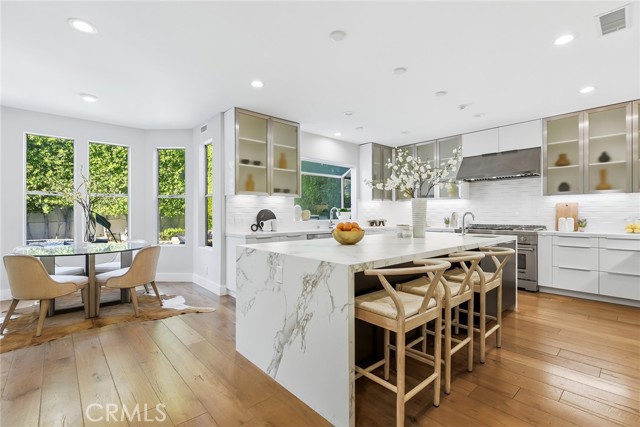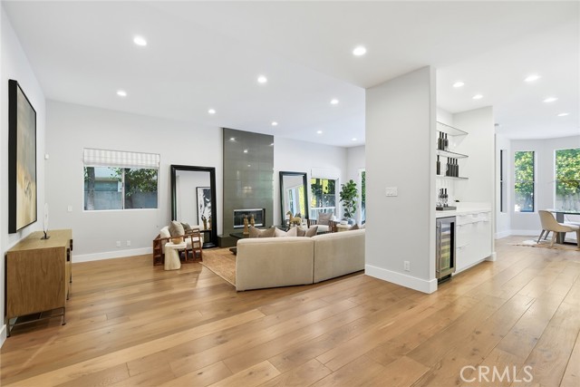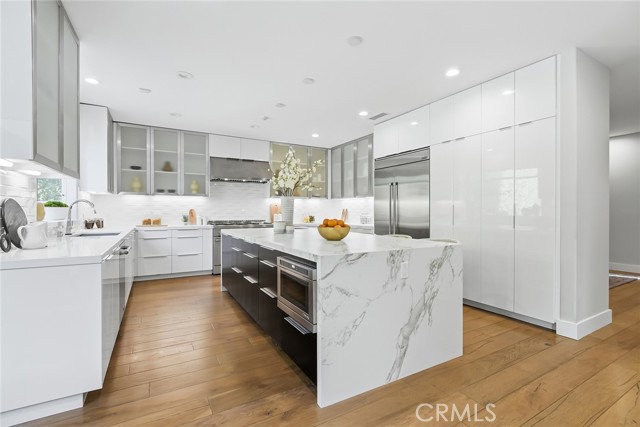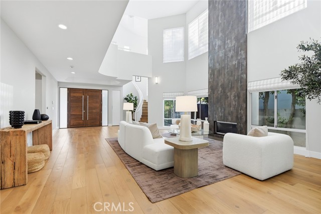 Striking, one-of-a-kind, fully remodeled residence located south of Ventura Blvd in Encino, offering exceptional scale, privacy, and refined design. Featuring 5 bedrooms plus an office (potential 6th) and 5.5 baths across approximately 5,224 square feet. A double door entry opens to a dramatic formal living room with soaring ceilings and beautiful wood floors that carry throughout. A thoughtfully designed floor plan offers distinct living and entertaining spaces, including a generous formal dining room, formal living room, and expansive family room. The chef’s kitchen is both functional and inviting, anchored by an oversized center island with eat-at bar, sink and dishwasher, designer countertops, a breakfast nook, built-in professional refrigerator, and high-end stainless steel appliances. Thoughtfully designed for both everyday living and elevated entertaining, the home offers multiple gathering spaces with effortless flow to the outdoors. Fireplaces in the living room, family room, and primary suite add warmth and character throughout. The private backyard is a true retreat, complete with a pool, built-in BBQ, and dedicated cooking area—ideal for hosting or unwinding. Upstairs, an elegant staircase leads to four spacious en-suite bedrooms, each with walk-in closets. Three balconies invite in natural light and enhance the indoor-outdoor connection. The expansive primary suite is a true retreat, featuring a fireplace and a spa-inspired bath with dual walk-in closets, a vanity area, separate shower, soaking tub, and private water closets with bidet. Additional features include an attached 2-car garage and a well-executed floor plan designed for both everyday living and elevated entertaining. Ideally located south of Ventura Blvd with close proximity to the Westside—approximately 15 minutes to UCLA, 20 minutes to West LA, and 25 minutes to Santa Monica and the coast. Just moments from Ventura Blvd’s top dining and shopping, this home offers a rare combination of space, privacy, and location in one of Encino’s most sought-after neighborhoods.
