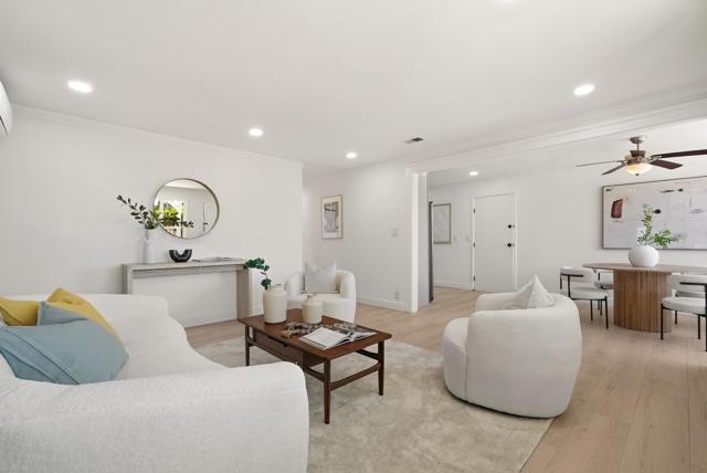 Nestled in the heart of Sunnyvale, this beautifully updated 4-bedroom, 2-bath modern home seamlessly blends designer finishes with Silicon Valley convenience. Offering 1,753 sq ft of thoughtfully designed open-concept living space, the home showcases recessed lighting, and an inviting chefs kitchen featuring a quartz island, custom cabinetry, and a walk-in pantry . The luxurious primary suite includes a spa-inspired bathroom with a freestanding soaking tub, separate shower, and dual vanity. Major system upgrades provide peace of mind, including a 200-AMP electrical panel, new HVAC system, new roof, new water heater, and dual-pane windows. Step outside to a private, low-maintenance yard filled with over 10 varieties of mature fruit trees, grape, fig, orange, plum, pomegranate, avocado, peach, lemon, loquat, and more, creating your own backyard orchard. Ideally situated in a quiet setting just moments from local shopping and dining, this home is a commuters dream with easy access to Highways 101, 237, and Lawrence Expressway. Enjoy proximity to major tech campuses such as Google, Apple, and Amazon, as well as vibrant downtown Sunnyvale and Murphy Avenue. Move-in ready and perfectly located, this home offers the very best of Sunnyvale living.