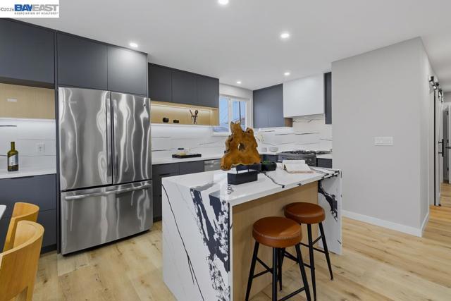 Enjoy breathtaking ocean views just steps from your home! Welcome to 168 Belcrest, a fully renovated residence thoughtfully upgraded throughout. Fresh interior and exterior paint, new flooring, and modern lighting create a bright and inviting atmosphere. The newly remodeled kitchen features high-end European-style cabinetry and a stunning waterfall island, perfect for both everyday living and entertaining. The main level offers 3 bedrooms and 2 fully remodeled bathrooms. Downstairs includes a wet bar, a full bathroom, and a studio with a separate entrance — ideal for extended family, guests, or potential rental income. Additional upgrades include a deep garage with a newly installed garage door, complete re-wiring, new insulation, updated plumbing, and a new sewer line for peace of mind. A newly built backyard deck provides the perfect setting for gatherings with friends while enjoying sunset views. Within walking distance to the shoreline, you can savor peaceful mornings with the sunrise and seagulls along the coast. Come see this beautiful coastal home today!