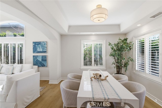 Peacefully tucked away as the rear residence in a desirable 2-on-a-lot setting, this beautifully refreshed townhome offers exceptional space and a move-in-ready lifestyle in the heart of Redondo Beach. The spacious, traditional floorplan is designed for both everyday living and entertaining, featuring 4 bedrooms and 4 bathrooms, 2 generous living areas, and multiple dining spaces. Lush greenery, including fragrant jasmine, creates an inviting arrival and serene atmosphere. Inside, a dramatic formal entry with soaring 2-story ceilings opens to a light-filled living room, where elegant arched transom windows draw in abundant natural light and add architectural character. New wide-plank flooring, fresh interior paint, and plantation shutters create a crisp, coastal aesthetic. The formal dining room flows into the updated kitchen, where abundant cabinetry, quartz countertops, a newer refrigerator, and dishwasher offer both style and functionality. A breakfast bar connects to a casual dining area and the inviting family room, anchored by a cozy fireplace, creating a warm space to get together. Sliding glass doors open to a private backyard retreat, complete with a pergola-covered patio, low-maintenance hardscape, a mature shade tree, and a blossoming fruit tree, an ideal setting for enjoying peaceful moments or lively gatherings in the ocean breeze. A guest parking spot between the 2 townhomes enhances privacy and allows the backyard to span the full width of the lot. The main level also includes a remodeled powder bathroom, direct access to the 2-car garage, and functional storage. Ascend the grand staircase to the private upper level, where all bedrooms are thoughtfully positioned together. A well-appointed guest suite features a vaulted ceiling, window bench, and a stylishly updated en-suite bathroom. 2 additional bedrooms share a remodeled Jack-and-Jill bath, while the central hall offers additional storage and a convenient laundry room complete with a sink, washer, and dryer. At the end of the hall, the expansive primary suite retreat features a 2nd fireplace, a walk-in closet, and a luxurious 5-piece bathroom. Ideally located near award-winning schools, parks, shopping, dining, and moments from the beach, this exceptional home offers a lifestyle defined by comfort, space, and coastal living. Whether relaxing at home or experiencing the vibrant South Bay surroundings, this residence captures the best of Redondo Beach. Refreshed, refined, and ready for you.