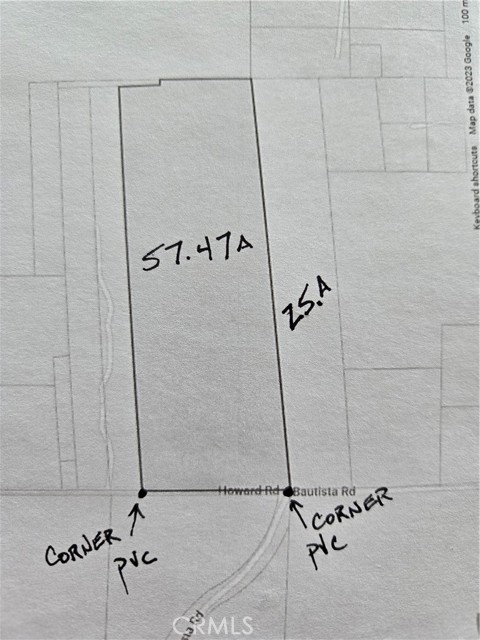 Rare 57.47-acre parcel in Anza, Riverside County for sale. Mostly flat and usable land with some cleared acreage, fencing and holding pens in place. Paved road (Bautista) nearly ends where parcel starts on Howard Road (dirt). Electricity at the road in front. This is a well and septic area. Horse and bike trails, ideal for horse ranch, farm, agriculture, vineyard, home development, zoned R-R. Check with County as to zoning and use. Close to the town of Anza, casino; near Temecula and Hemet, about an hour to Palm Desert! Hard-to-find acreage of this size at this price given location and usability; strong development potential.