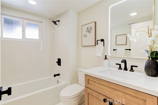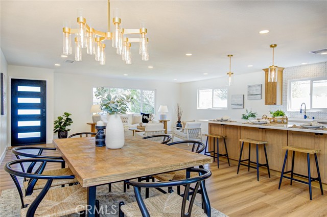 Welcome to this beautifully reimagined and expanded single-story home in the highly desirable College Park neighborhood of Costa Mesa. This turnkey residence features 3 bedrooms and 2 bathrooms, showcasing a timeless modern design with exceptional attention to detail and seamless open-concept living. Step inside to an inviting living room with refined finishes that create a warm yet sophisticated atmosphere. At the heart of the home, the fully redesigned chef’s kitchen impresses with custom cabinetry, quartz countertops, a designer marble backsplash, a custom range hood, and high-end appliances—including a premium range, built-in microwave drawer, dishwasher, and French-door refrigerator. The kitchen flows effortlessly into a dedicated dining area highlighted by a stylish chandelier and opens to a spacious family/rec room—perfect for everyday living and entertaining alike. The spacious primary suite offers a peaceful retreat, complete with a beautifully updated ensuite bathroom featuring quartz countertops, a walk-in shower, and a generous walk-in closet. Two additional bedrooms and a tastefully upgraded secondary bathroom provide flexibility for family, guests, or a home office. Experience true California indoor-outdoor living in the private backyard, complete with a brand-new pergola and a serene retreat area featuring a tranquil water fountain—ideal for relaxing or hosting gatherings. Additional highlights include an attached two-car garage with epoxy-coated flooring, electric vehicle charging capability, new garage door motor, and remote access. The home has undergone an extensive permitted renovation inside and out, complete with a full set of plans and too many upgrades to list—offering both quality craftsmanship and peace of mind. Ideally located just minutes from shopping, dining, and entertainment, this exceptional property is move-in ready and waiting to welcome you home.