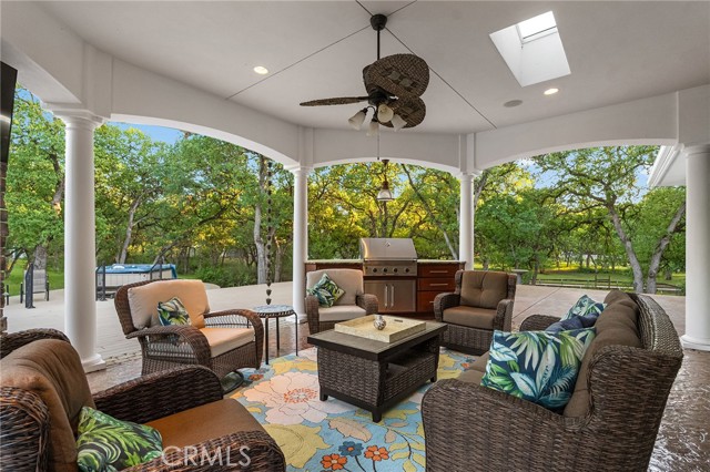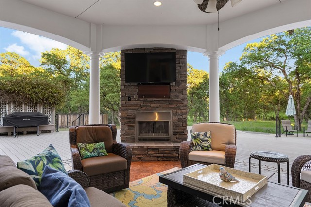 Welcome to Three Oaks Estate, a gated, fully fenced Victorian Craftsman where timeless design meets everyday comfort. Thoughtfully built with quality materials & warm, classic finishes, this is a home designed for real living. The home opens to a dramatic grand room w/ soaring 22-foot ceilings. The floor plan flows naturally from room to room & the kitchen is truly the heart of the home, featuring a large farmhouse sink, top-of-the-line appliances with a built-in Sub-Zero refrigerator, a generous kitchen island, butler’s pantry/coffee bar, & a large walk-in pantry. Timeless finishes, solid wood doors, soft-close cabinetry, & thoughtful details thru-out give the home a classic, enduring feel. An add'l well-designed den just off the kitchen offers flexibility for everyday life—perfect as a quiet retreat, office, or teen hangout room. From there, step directly onto the screened-in porch, creating an easy transition between indoor & outdoor living. Upstairs, the generously sized bedrooms feature en-suite bathrooms w/ a charming turret sitting area that can be used as a workout space, art/craft room, etc. The private primary suite offers a spa-like escape w/ a jetted soaking tub, multi-head shower, & steam shower. For entertainment, the home includes a dedicated custom theatre room with immersive 7.3 surround sound & a star-lit acoustic ceiling & a mini bar. Technology thru-out the home includes surround sound audio & Control4 lighting, allowing lighting & ambiance to be easily customized. The property also includes an attached 5th-bedroom apartment w/ a private entrance, ideal for guests, extended family, or potential rental income. Outdoor living continues the story of this property. The large covered patio w/ a grand rock fireplace & built-in barbecue creates a welcoming space for year-round entertaining. Enjoy the peaceful screened porch off the den, relax in the hot tub, or simply take in the natural surroundings. Mature landscaping, soft landscape lighting, and access to the natural portion of the property & seasonal creek create a setting filled w/ privacy & the quiet sounds of nature. Add'l features include owned solar panels, security gate w/ camera, whole house fan, central vacuum system, raised garden beds, covered dog kennel, garden shed, & extensive attic storage. Three Oaks Estate is a home that truly has it all—timeless finishes, thoughtful spaces, & beautiful indoor & outdoor living areas. It’s the kind of home where life is meant to be lived.