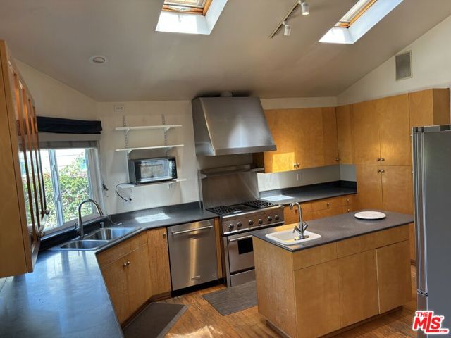 Located in the highly desirable Westside Village neighborhood, this light-filled home features updated windows and skylights, creating a bright and inviting interior. The living room offers hardwood floors, a cozy fireplace, and a front-facing bay window. The spacious kitchen includes built-ins, an island, and high ceilings, ideal for everyday living and entertaining. Property includes a secured carport with long driveway. The 2-car garage and a large storage room in back was added in 1985 with permits. Since then, the large storage room (Approx. 528 Sq Ft) was converted into a very comfortable guest house with kitchen and bath (buyer to verify permits and use). Additional features include a propane-powered backup generator and solar panels. Situated on a tree-lined street in a well-established neighborhood, conveniently close to shopping, dining, transportation, entertainment, schools, and much more. Priced to sell! Opportunity is knocking, don't miss it!!!