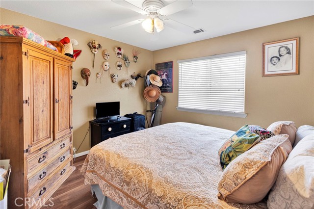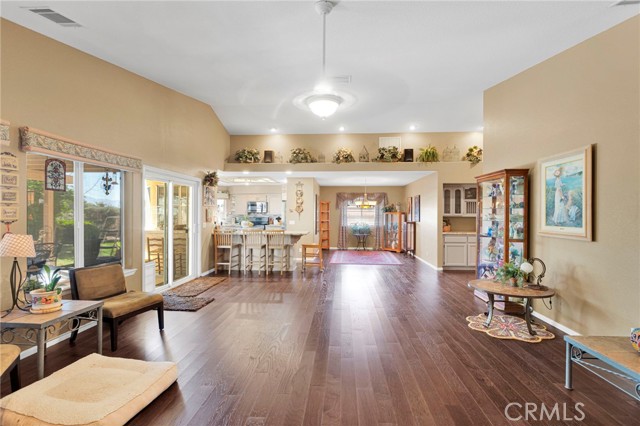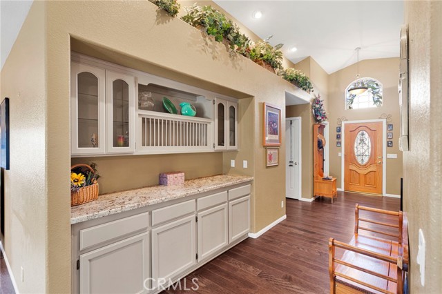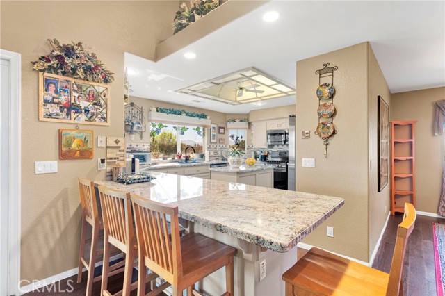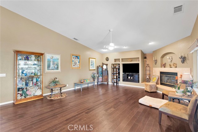 Welcome to a home where pride of ownership truly shines. Offered for the first time in over 25 years by its original owners, this beautifully maintained property, built by Leisure Homes, is a rare find in Silver Lakes. From the moment you arrive, you’re greeted by a gated front porch with a charming garden, mature cherry and pear trees, automatic sprinklers, and an inviting entry featuring an iron front door screen. Inside, the home boasts five-year-old luxury vinyl plank flooring throughout and an open-concept layout designed for both comfort and entertaining. The living room showcases vaulted ceilings with decorative pot shelves, is pre-wired for speakers, and centers around a cozy gas fireplace with a tile surround and log insert. The adjacent dining area flows seamlessly into the kitchen, which offers granite countertops, abundant storage, a pantry, stainless steel appliances, a glass backsplash, and a charming “pass-through” window to the backyard—perfect for entertaining. Additional highlights include an indoor laundry room with a built-in ironing board, ample hallway storage, and a custom built-in display for your favorite pieces. The primary suite is a relaxing retreat featuring LVP flooring, pot shelves with up-lighting, and custom built-ins. The primary bathroom includes dual hammered copper sinks, a jetted soaking tub, a separate tiled shower, and a private water closet. Bedrooms two and three also feature LVP flooring, while the guest bathroom offers upgraded tile finishes and a newer toilet/bidet. Step outside to a backyard designed to enjoy the beauty of Silver Lakes, complete with a covered patio, built-in barbecue, grassy area, rose bushes, and breathtaking sunrise views. Additional bonus: paid solar for energy efficiency. Sellers are motivated and will require a replacement home—