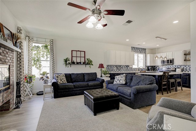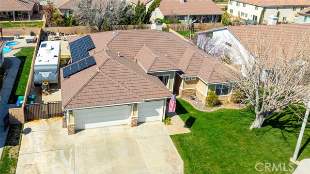 Charming Honeybee Lane home featuring paid-off solar, a 3-car garage, and an oversized parking pad (about 35' x 10') —perfect for a motorhome or additional vehicles. Situated on a spacious 9,689 sq ft lot, this property offers great curb appeal with a welcoming front porch and a large covered patio for easy indoor-outdoor living. As you enter the home, you’re greeted by a flexible space to your right—ideal as an office or optional 4th bedroom. The floor plan then opens into a light-filled living room with expansive windows overlooking the backyard. The open-concept layout flows seamlessly into the family room and a recently renovated cooks kitchen with a large island and views of a beautiful cherry tree. Everywhere you look, there is something pleasant to see. This home offers 3 bedrooms plus an office OR optional 4th bedroom. The primary suite includes an en-suite bath, generous closets, and sliding glass doors to the backyard. Secondary bedrooms are well-sized. Additional upgrades include updated HVAC, newer flooring (tile that looks like wood - AMAZING), newer paint, updated and charming kitchen, and bathrooms. Approximately 1,885 sq ft. Move-in ready with space, flexibility, and comfort. Come home to this great property in a fantastic neighborhood!
