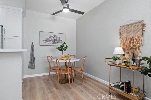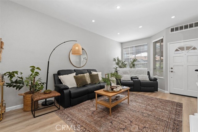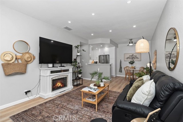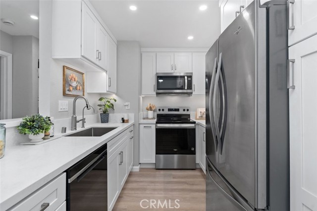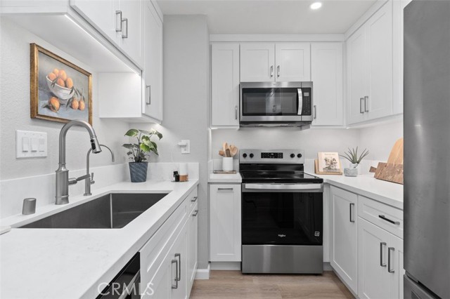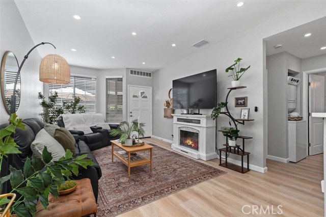 Welcome to 23 Via Honrado—where effortless living meets a beautifully remodeled home in the heart of delightful Mission Courts. Tucked behind a freshly painted private gate, this ground level, no-stairs residence invites you in with a sense of ease from the very first step. The oversized, enclosed patio feels like your own outdoor retreat—perfect for morning coffee, quiet evenings, or hosting friends—surrounded by refreshed stucco walls and lush, low-maintenance greenery. Inside, every detail has been thoughtfully curated to create a completely turnkey experience. Wide-plank, commercial-grade white oak luxury vinyl flooring flows throughout, complemented by crisp new baseboards, solid wood doors, and brushed metal hardware. Fresh neutral paint, recessed lighting bring a clean, modern feel - while thoughtful, high-end upgrades like a smart thermostat, Kinetico whole house water system, reverse osmosis and ADA accessibility bring effortless comfort to daily living. The brand-new kitchen is both timeless and functional, featuring white quartz countertops, solid wood shaker cabinetry with custom under lighting, a farmhouse-style sink and sleek brushed nickel finishes. Enjoy newer appliances (many with warranties), plus a refrigerator included—making move-in seamless. The living room is bright and inviting, with large windows framing your private patio, while the dining area is perfectly anchored by a ceiling fan for everyday comfort. A stacked in-home laundry (washer/dryer less than a year old) adds to the home’s practicality. Your bedroom is a peaceful escape with mirrored closet doors, a ceiling fan, and soft natural light. The fully remodeled bathroom offers a spa-like feel with new cabinetry, updated fixtures, a resurfaced tub, and dual shower heads. Beyond the home, enjoy a one-car garage and access to Mission Courts’ amenities—pool, spa, greenbelts, BBQ areas, and playground—plus the unmatched lifestyle of SAMLARC, featuring a beach club, lagoon, lake activities, resort-style pools, and year-round community events. Walk to the lake, dining, shopping & fitness. Bike to trails and O’Neill Regional Park— nature, convenience, and community are just outside your doorstep. Whether your starting out or simplifying your lifestyle, this is more than a home - it’s your everyday retreat! Your best life starts here!!