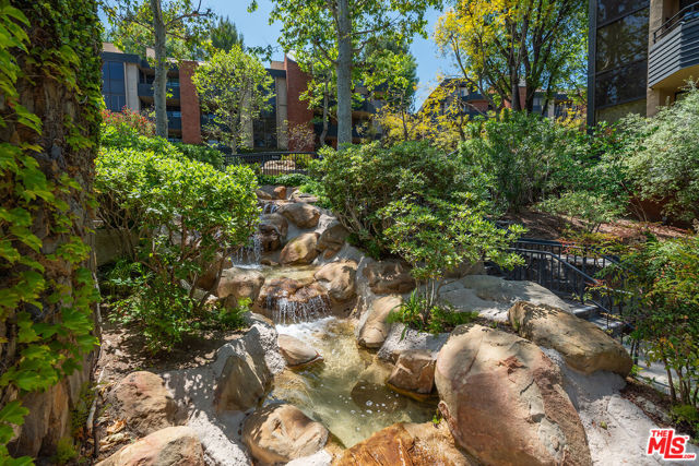 PRIME LOCATION in Building 4 at the exclusive gated community of Encino Towers, is this 1985 SF single story, 2 bed, 3 bath unit with 2 private balconies. The spacious primary suite has a double door entry, 2 walk-in closets, gas fireplace and access to the rear balcony with hillside views. The large primary bath includes separate tub, shower, and double sinks. The living room has a fireplace, wet bar and access to the front balcony with amazing views overlooking the community, trees and the hills of the valley. Other features include the kitchen with stainless appliances, 2 ample pantries, views; dining area; in unit laundry; two side by side parking spaces & additional storage in the garage. Fireplaces are decorative. The grounds are quiet & serene, with lush landscaping, a heated pool, 2 spas, waterfalls, tennis courts, pickleball & resort-like living. HOA includes 24-hour security gate, EQ ins, water, high speed Internet, cable TV & common area maintenance. Guest parking. The exterior of all buildings at Encino Towers have been recently painted and all entrance lobbies have been updated. Just South of Ventura Blvd near shops & restaurants.