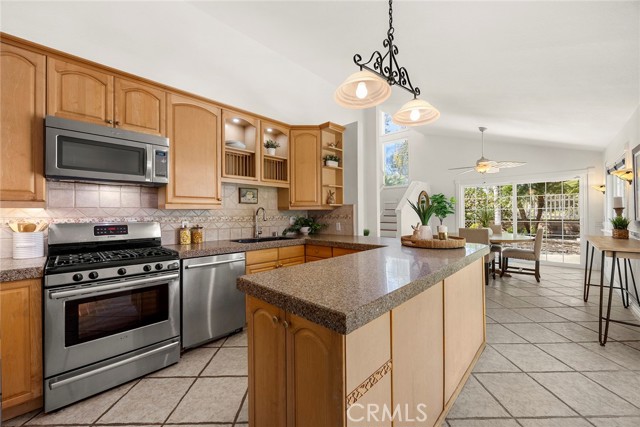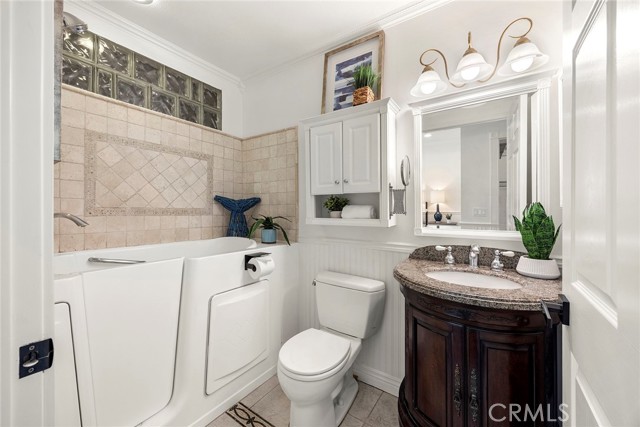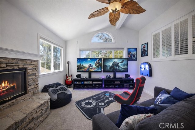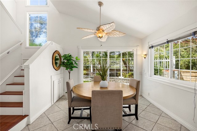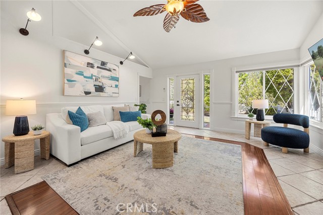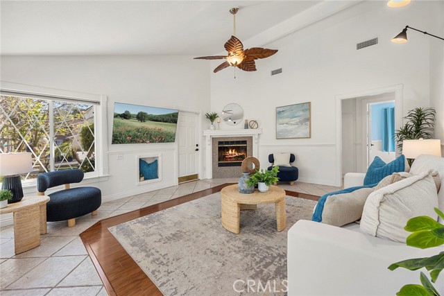 If you’ve been looking for a 4-bedroom, 3 full bath home PLUS a spacious BONUS ROOM for your office or creative space, look no further than 27426 Sereno in the heart of Mission Viejo. With only one HOA the entire family will enjoy this premier corner lot home, expanded from its original layout. A vinyl picket fence, soothing water feature, and lush landscaping create a warm and inviting first impression. Inside, natural light fills the living space, highlighted by a cozy gas fireplace, front-facing windows, unique tile flooring with wood-like inlay, and an open niche perfect for media or décor. The main level offers three bedrooms, including a spacious primary suite with wainscoting, recessed lighting, ceiling fan, and a double-pane sliding glass door with direct backyard access. It also features a large walk-in closet, an additional closet for everyday essentials, and a private bath. Two secondary bedrooms share a full bath with a jetted tub and ample linen storage. The kitchen features ample cabinetry, stainless steel appliances, and a peninsula with optional bar seating that opens to the dining area. A built-in storage cabinet in the dining area keeps everyday essentials neatly tucked away. Two sliding glass doors provide seamless access to the side and backyard, creating a natural indoor-outdoor flow that’s perfect for entertaining. Upstairs, a light-filled staircase with rich wood laminate flooring, high ceilings, and multiple windows. Here you’ll find an additional bedroom with a closet, a full bath with jetted tub, and an expansive BONUS ROOM filled with natural light, a stone gas fireplace and remote-controlled shades—perfect as a virtual home office or an extra bedroom for extended family or guests. The upper level also includes convenient built-in storage ideal for keeping linens and household essentials neatly organized. The backyard is designed for year-round enjoyment with a gazebo, fire pit, and TV, along with the best lemon and orange trees, your own herbs - sage and rosemary with plenty of grassy play areas, vinyl fencing, and a raised seating area with custom pavers. This home also offers added accessibility with two ramps—one in the garage providing access into the living area, and another in the backyard. Additional features include a tankless water heater, attached two-car direct-access garage, and access to Lake Mission Viejo with so many fun amenities. A home that offers space, flexibility, and comfort in a beautiful setting.