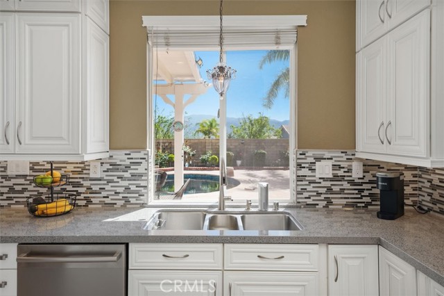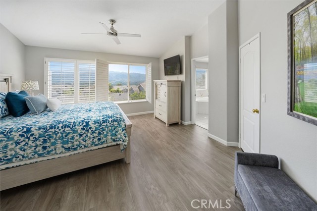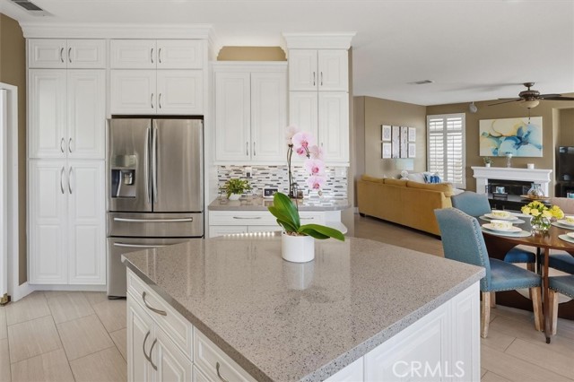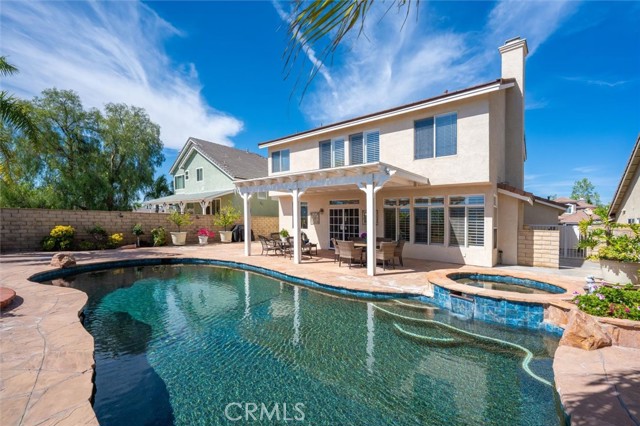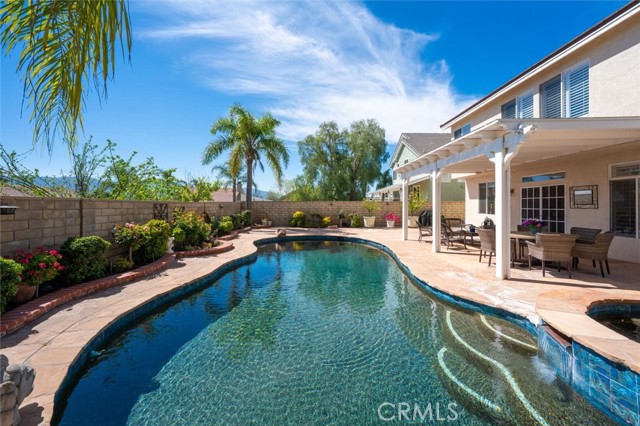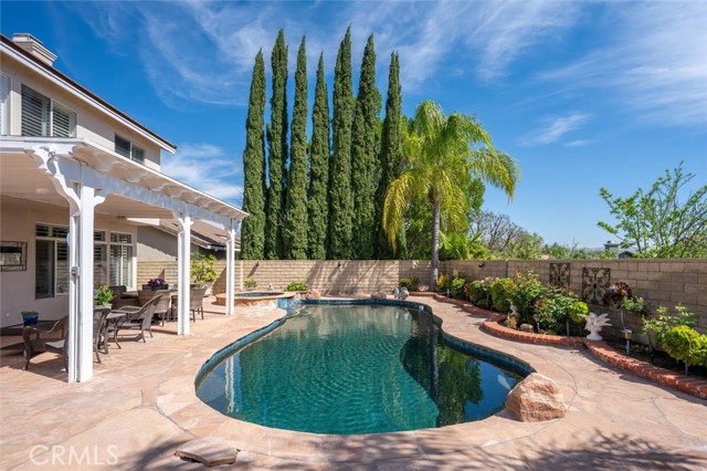 If you are looking for a beautifully upgraded pool home that has been impeccably maintained and thoughtfully improved, your search may be over. Welcome to 28223 Bel Monte Court. This exceptional residence offers the perfect blend of comfort, functionality and style. Featuring 4 bedrooms, 3 bathrooms, and a dedicated downstairs office, this home showcases extensive updates throughout. The remodeled kitchen is a true centerpiece, complete with quartz countertops, a center island, built-in refrigerator, and premium Bosch 5-burner cooktop, oven, and microwave. It opens seamlessly to the dining and family rooms, creating an ideal space for both everyday living and entertaining. The family room offers a warm and inviting atmosphere with a fireplace and recessed lighting, while plantation shutters enhance the downstairs living areas. A full bathroom and private office on the main level provide flexibility for guests or working from home. Upstairs, a spacious loft adds additional living space, along with a well-appointed hall bath featuring dual sinks, tile flooring, and a tub/shower combination. The oversized laundry room includes a convenient utility sink. The primary suite is a true retreat, featuring two separate walk-in closets, plantation shutters, and updated laminate flooring. The en-suite bath offers dual vanities, a soaking tub, and a separate shower. Additional highlights include ceiling fans throughout and a direct-access 3-car garage with epoxy flooring, built-in cabinetry, and a workbench. Step outside to your private backyard oasis, complete with a covered patio, sparkling pool and spa, flagstone hardscape, and beautifully landscaped grounds—perfect for relaxing or entertaining year-round.