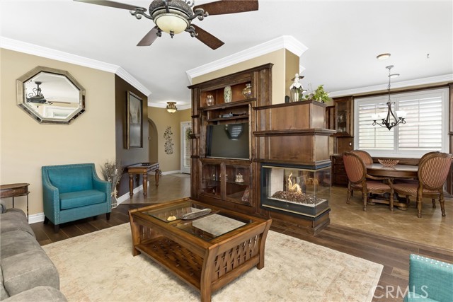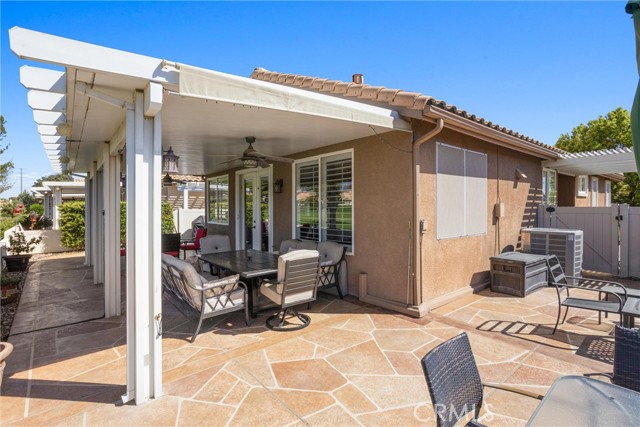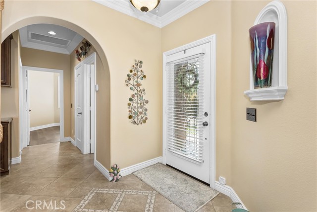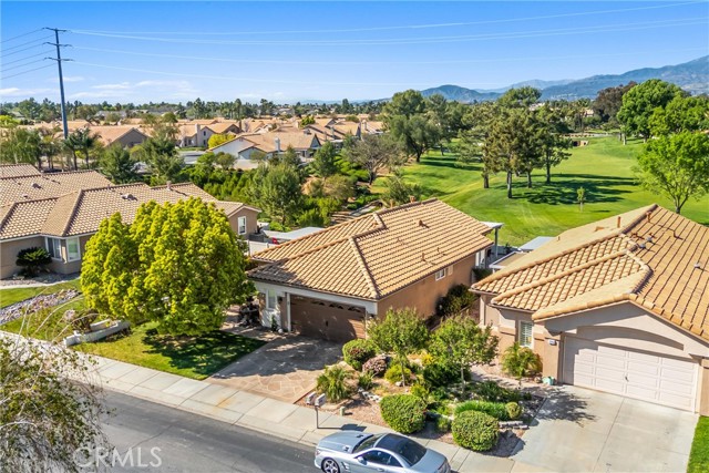 Where Views, Upgrades & Lifestyle Meet – Exceptional Golf Course Home From the moment you arrive, this beautifully upgraded Magnolia model impresses with hand-crafted textured concrete driveway and walkways, manicured landscaping, and a tranquil front fountain. Beyond the wrought-iron gate, a private courtyard with sitting area, grass, and direct doggie door access offers a peaceful and functional outdoor space. Inside, this 2-bedroom, 2-bath home features new luxury vinyl plank (LVP) flooring in the living room and bedrooms, along with crown molding, plantation shutters, recessed lighting, custom arched entries, and a see-through gas fireplace with custom built-in entertainment center. The kitchen opens to the living area and showcases high-end appliances, granite countertops, tile backsplash, and custom cabinetry throughout, with matching finishes carried into the bathrooms with tiled showers. The primary suite offers dual closets, including a walk-in and a secondary closet with direct laundry room access, plus French doors leading to a private sitting area with golf course views. The backyard is perfectly positioned on Hole #14 with unobstructed golf course and mountain views, and a large covered patio with insulated cover, lighting, and ceiling fan—ideal for entertaining. Additional features include a 16-SEER HVAC system, 220V outlet for spa, and garage with built-in cabinets, overhead storage, and golf cart space. Located near the South Clubhouse with pool, spa, fitness center, and more. Sun Lakes offers 2 golf courses, 3 clubhouses, pools, pickleball, tennis, dining, and extensive amenities. HOA includes Spectrum cable and internet. **VA assumable loan available for qualified buyers at 4.87%.** Move-in ready with exceptional upgrades, views, and lifestyle.