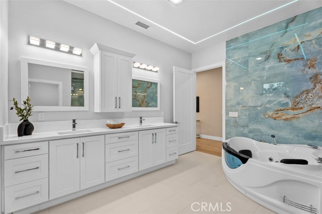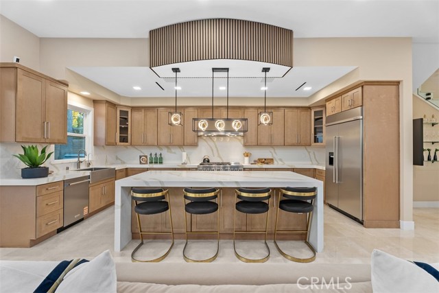 Exceptional brand new home with NO MELLO-ROOS, perfectly situated in the heart of Irvine. Thoughtfully designed and featuring 4 en-suite bedrooms, including a **highly desirable main-level suite—ideal for multi-generational living or hosting guests—**and effortless indoor-outdoor living. The bright great room welcomes you with a stunning 100” fireplace, a custom-designed bar area perfect for gathering with friends and family, and sliding doors that open to the backyard. The gourmet kitchen is both stylish and functional, showcasing a waterfall-edge quartz island, KitchenAid appliances, wine cooler, and designer finishes. Upstairs offers three en-suite bedrooms, including a spacious primary retreat with a spa-inspired bath and walk-in closet. Thoughtful upgrades include marble and European oak flooring, glass railings, LG wash tower, smart home features, solar panels, EV charger, and security cameras. Step outside to a private backyard with BBQ island, fountain, and mature trees—an inviting space to relax or entertain. Located in the highly desirable University Park community, with access to top-rated University High School and just minutes from UCI, along with beautiful parks and greenbelts nearby. Low special assessment of only $164.72.
