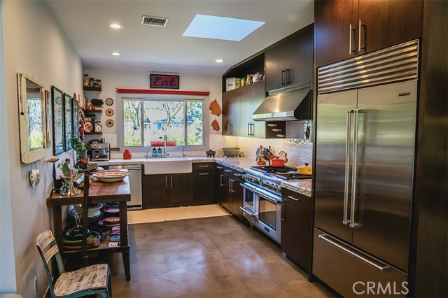 Located in the premier Heights neighborhood of Eastside Costa Mesa, this stunning mid-century contemporary home seamlessly blends timeless architecture with modern upgrades. This four bedroom, two bathroom residence was thoughtfully remodeled and expanded in 2017 to maximize functionality and luxury. The home features a gourmet kitchen anchored by polished concrete floors and premium stainless steel appliances, including a six-burner Thermador range with double ovens and a 42-inch Sub-Zero refrigerator. This culinary space flows directly into the dining room, where an oversized custom pocket sliding door reveals a beautifully landscaped, private backyard designed for sophisticated outdoor entertaining. Optimized for the Southern California lifestyle, this gem emphasizes an effortless indoor-outdoor flow. The interior is bathed in natural light and coastal air via two sets of French doors in the living room and expansive sliding glass doors in the dining and guest areas. The second-level primary suite serves as a private sanctuary, boasting a custom bathroom with an oversized walk-in shower and a spacious walk-in closet. Dual sliders within the suite invite refreshing ocean breezes, while a private sun deck offers an ideal space for relaxation. The home is completed by an oversized garage exceeding 500 square feet, providing ample parking for two vehicles and significant storage for recreational gear or hobbies. Combining a prime Eastside Costa Mesa location with high-end finishes and modern expansion, this eclectic Contemporary retreat represents a rare opportunity in one of the most desirable coastal real estate markets.