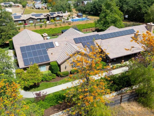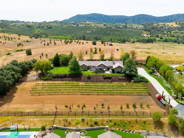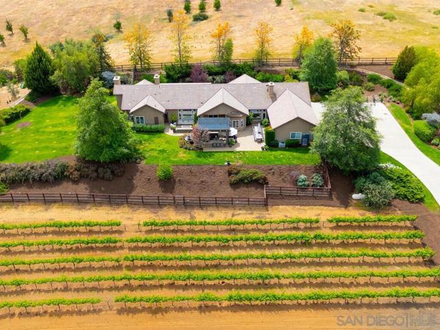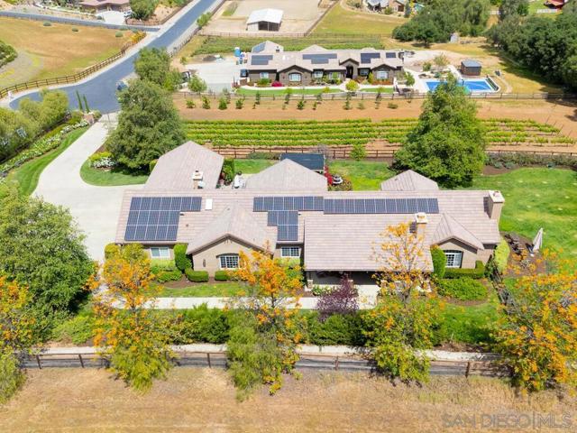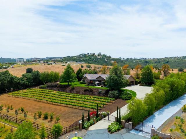 IMMACULATE VINYARD LUXURY HOME! Located within the exclusive Citrus Pointe Estates & gated community, This home sits on 2.09 acres of lush landscape, wine producing Syrah grapevines & magnificent PANORAMIC VIEWS! Enjoy the spacious layout of this 4 bed, 3 bath home designed with meticulous detail from high end cabinetry throughout, top end appliances, with fine finishings, & upgrades galore. Included is a 6 car garage, fully gated & fenced, owned 40 panel solar with 2 Tesla backup batteries, RV parking.