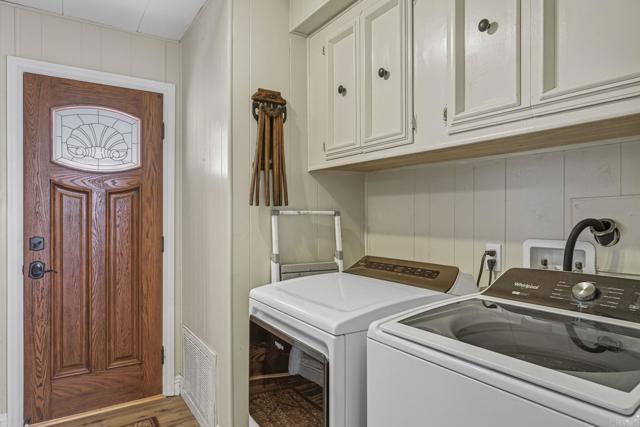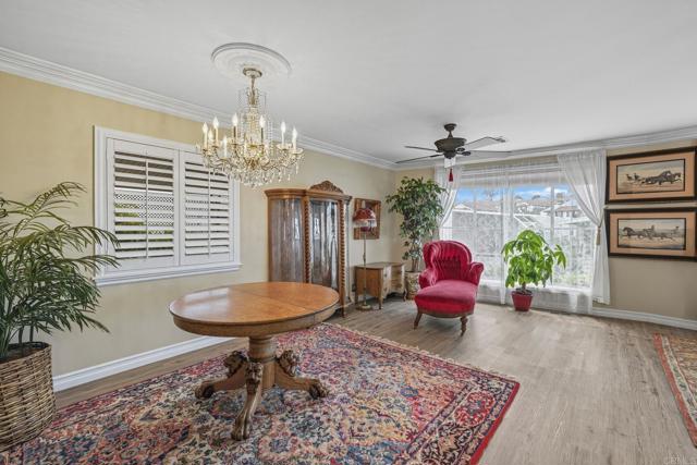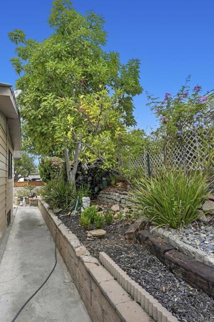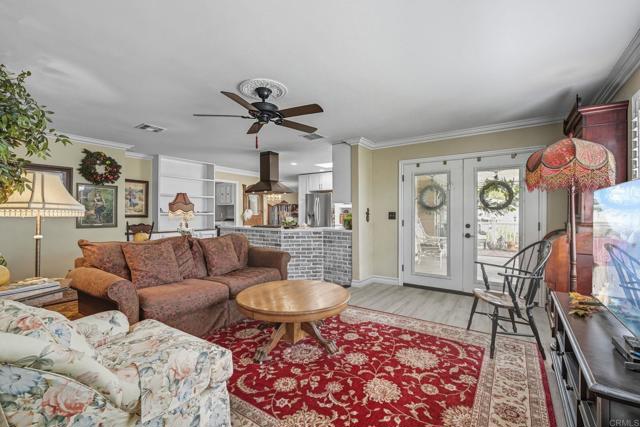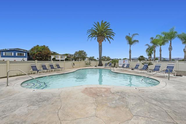Enjoy a peek-a-boo ocean view sunset from your large hard wood porch! This beautiful and spacious 2 bedroom 2 bath located on a gently sloping corner lot surrounded by gardens, porches, patios, and views! Uniquely private and useable lot is completely landscaped front, back, and side yards. Low water succulents and plumeria in front, lime, lemon, and avocado in back and delicious fig on the side yard. The large home has been wonderfully updated with space for formal living area, family area, and a den/office. The large open kitchen with views to the west is perfect for the chef of the house. Enjoy a large master bedroom with over sized closet and slider to a private patio. Get ready for fun community activities or just unwind in your remodeled bathroom with quartz counters, lots of cabinet space and a claw foot tub. Large lot is one of the most spacious in the Community and adjacent to 3 guest parking spaces and shady tree on the West side of home. Walking distance to putting green, lawn bowling, and picnic area. The community has a pickleball, pool, tennis courts, club house and community events! Walk to shopping, bank and restaurants. Located just a short drive from Carlsbad, Encinitas, Vista, or Escondido, this freshly extensively renovated home is Move-In Ready! No property tax. Space fee is $685 per month and includes water/trash /sewer