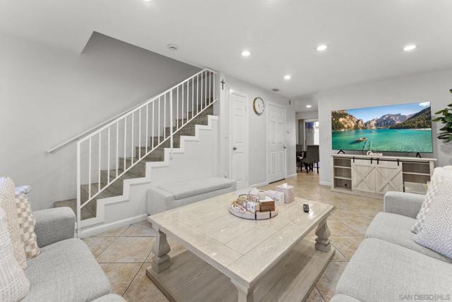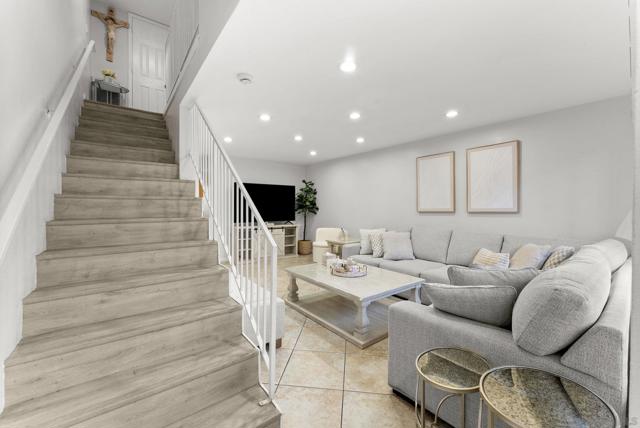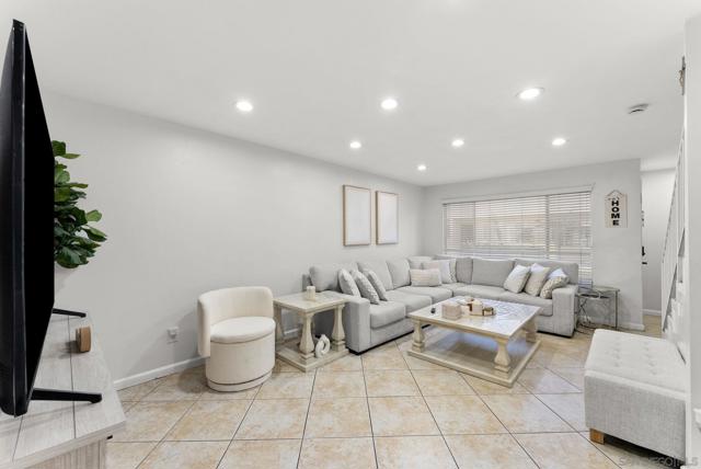 Gorgeous 2 bed, 1.5 bath townhome, move-in ready. Perfect for first time buyer. Upgraded and clean. Spacious living room with recessed lighting. Beautiful tile throughout. Freshly painted. new floors Charming patio/sitting area. Two huge bedrooms upstairs. Nicely maintained new floors landscaping in front. Two assigned parking spaces. Close to freeways, walking distance to shops.