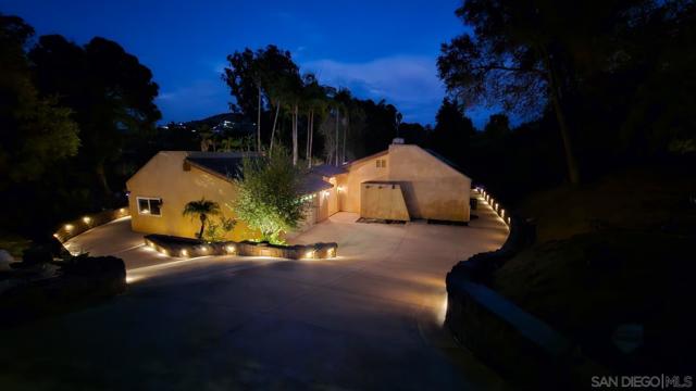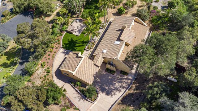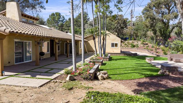 Available for the first time in 29 years, this exceptional turn-key estate is situated on a prime corner lot within the prestigious Fallbrook Ridgecrest Estates. Spanning nearly an acre (.87) of flat, fully usable land, the grounds are adorned with mature fruit trees and feature two separate driveway access points—offering the perfect layout for adding a private ADU. This flawless one-story Spanish/Mediterranean-style residence boasts a gourmet kitchen equipped with a 6-burner built-in gas range, dual ovens, a microwave, and a new side-by-side French door refrigerator. The expansive primary suite includes two walk-in closets and a spa-like bathroom featuring a massive jetted soaking tub and a walk-in shower. The home also offers two generous secondary bedrooms with a shared hallway bath, a convenient guest powder room, a family room with a built-in entertainment center, and a formal room with vaulted ceilings and a wood-burning fireplace. Additionally, a dedicated office with a built-in desk provides the flexibility to serve as an optional fourth bedroom. The property includes a detached guest house featuring one bedroom, one bathroom, and a living area, conveniently attached to a two-car garage. The extensive driveway accommodates 6–7 vehicles, complemented by ample street parking. The exterior has been completely transformed with newly remodeled retaining walls, fresh ?hardscaping, a turf backyard, and a firepit with a dedicated seating area. Enhanced by ambient landscape lighting, a newly installed drip and irrigation system, and a state-of-the-art security system.