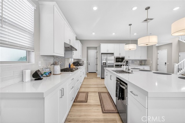 Welcome to 731 Westbrook Loop, an exceptional 5-bedroom, 5-bathroom, 3,453 sq ft two-story home nestled in a desirable gated community — less than 1.5 miles from Cal State San Marcos and located within the highly regarded San Marcos Unified School District. Designed for modern living and multigenerational comfort, this home features a fully appointed private Next Gen suite with its own separate entrance — equipped with a refrigerator, microwave, sink, and stacked washer and dryer, creating a fully self-sufficient living space ideal for extended family or guests. The main level showcases a spacious open-concept living and dining area with luxury vinyl plank flooring throughout, anchored by a stunning kitchen with quartz countertops, stainless steel appliances, reverse osmosis water filtration, and spacious walk in pantry. Large sliding doors flow seamlessly to the California Room, creating the ultimate indoor-outdoor entertaining experience year-round. Upstairs, you'll find four generously sized bedrooms, a dedicated loft perfect as a media room, playroom, or workspace, and a conveniently located upstairs laundry room that makes daily living effortless. The primary suite is a true relaxing area, complete with a walk-in shower complimented with a spa-like tub next to it. One of the home's most valuable features? Fully owned and paid-off solar — dramatically reducing your energy costs from day one with zero monthly lease obligations. Steps from the growing North City development with new dining and retail, and minutes from Highway 78 and the 15 freeway, the location checks every box. Strong schools, a thriving community, and a university next door make this one of San Marcos' best-positioned addresses for a loving home. This one has it all — space, style, sustainability, and an unbeatable location. Don't miss it!