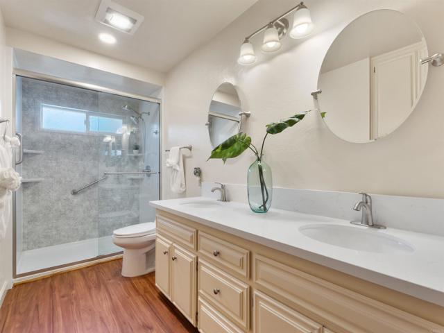 Welcome to this beautifully maintained custom home in the highly sought-after Old La Costa community of Carlsbad. Offering approximately 3,400+ square feet of living space, this property combines timeless character with thoughtful updates and incredible versatility. This home has been well taken care of and offers an incredible floor plan fit for multigenerational living. Situated on a spacious lot with mature landscaping and lush, scenic surroundings, the property creates a private and tranquil setting. The backyard and patio areas are ideal for entertaining guests, featuring a sparkling solar heated saltwater pool, a beautiful gas fire pit on the pool deck, and plenty of space to relax, gather, and enjoy indoor-outdoor living. In addition, the home offers a large side yard with RV parking—an increasingly rare and highly desirable feature in this area. Inside, you’ll find a freshly painted interior, an upgraded kitchen, and a bright, inviting layout that flows seamlessly throughout. The home also features a full bedroom and bathroom on the main level, offering ideal flexibility for guests, multigenerational living, or a private home office. It provides a great blend of move-in readiness while still offering opportunities for a buyer to personalize certain spaces over time. The expansive primary suite is a true retreat, complete with a cozy fireplace, wet bar, private balcony, and subtle glimpses of the ocean—creating the perfect space to unwind. In addition, the upstairs bedrooms offer access to a wraparound deck that spans the back of the home, providing elevated views and a unique indoor-outdoor connection rarely found in homes of this kind. One of the standout features of this home is the approximately 800+ sq ft bonus room, ideal for a potential ADU, home office, gym, media room, or multi-generational living setup. Additional features include a whole house fan, central vacuum system, and solar for energy efficiency. Located in a premier La Costa neighborhood close to top-rated schools, golf, shopping, dining, and just minutes to the coast, this home offers a rare opportunity to own a spacious, custom property with endless potential in one of North County’s most desirable areas.