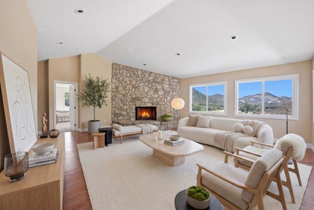 Peaceful Valley Views await in this truly unique property, conveniently located near I-15 and Hwy 76, yet offering a sense of stepping back in time as you pass through the historic Pala Rey Ranch. This charming single-story home captures breathtaking panoramic views and unforgettable sunsets. Thoughtfully upgraded throughout, the home features high ceilings, two stunning stone fireplaces, wood-lined ceilings, and elegant stone countertops in both the kitchen and bathrooms. The spacious layout includes 3 bedrooms, 3 bathrooms, and a dedicated dining room, creating a warm and inviting atmosphere. Step outside to a serene back patio and expansive land with endless possibilities—perfect for horses, a garden, vineyard, or even a pool. Located within the desirable Bonsall School District, this property offers both tranquility and convenience. Don’t miss this rare opportunity to own a one-of-a-kind retreat.