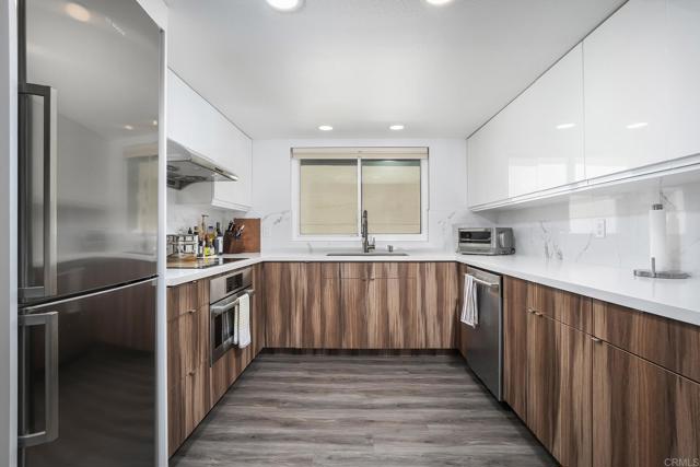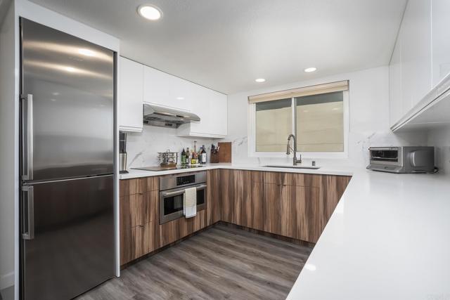 Perched on the top floor, this exceptional corner residence in Hillcrest’s coveted Uptown District offers refined urban living. This 2-bed, 2-bath home spans 949 sq ft and is filled with natural light, creating an inviting and sophisticated atmosphere. The thoughtfully redesigned kitchen showcases premium Bosch appliances, sleek cabinetry, and modern finishes—ideal for both everyday living and elegant entertaining. Spa-inspired bathrooms, updated in 2018, add a touch of comfort and style. Enjoy seamless indoor-outdoor living with a private balcony, perfect for relaxing or taking in the surrounding views. Additional highlights include secured garage parking with a Tesla charging station. Residents enjoy access to resort-style amenities including a sparkling pool, a fully equipped fitness center, outdoor BBQ area, and a dedicated dog park—perfect for both relaxation and an active lifestyle. Ideally located in a vibrant, walkable neighborhood just moments from top dining, shopping, and entertainment, this home offers the perfect blend of luxury, comfort, and lifestyle.
